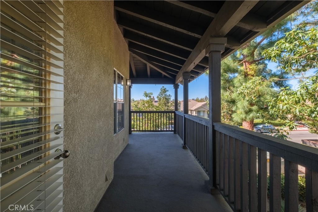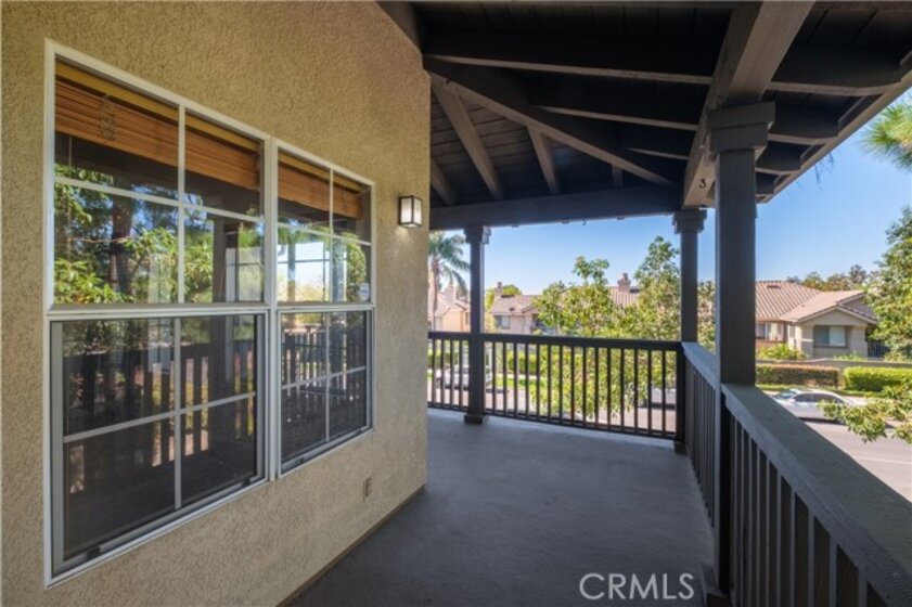 Turnkey upstairs condo with multiple balconies and resort-style amenities in the highly sought-after Tijeras Creek Villas of Rancho Santa Margarita. This light-filled home features soaring cathedral ceilings in the living room, creating an open and airy feel. The versatile floor plan includes a spacious primary suite and a secondary bedroom with direct access to the second bathroom, ideal for guests, roommates, or a home office setup. Enjoy seamless indoor-outdoor living with a wraparound balcony accessible from both the living room and primary bedroom, plus a second private balcony off the secondary bedroom—perfect for relaxing or entertaining. The interior is thoughtfully updated with luxury vinyl plank flooring, new carpeting, central air and heat, and a cozy gas fireplace. The kitchen offers stainless steel appliances, and the in-unit laundry adds everyday convenience. Parking is a rare bonus with a private one-car garage, assigned carport, and ample guest parking, allowing for up to three total spaces. Residents enjoy access to two pools and spas, a fitness center with sauna, BBQ areas, playgrounds, and beautifully maintained greenbelts. Ownership includes SAMLARC membership, offering access to Lago Santa Margarita, the Beach Club Lagoon, multiple pools, parks, sports courts, scenic trails, and year-round community events. An incredible opportunity to own in one of South Orange County’s most amenity-rich communities.