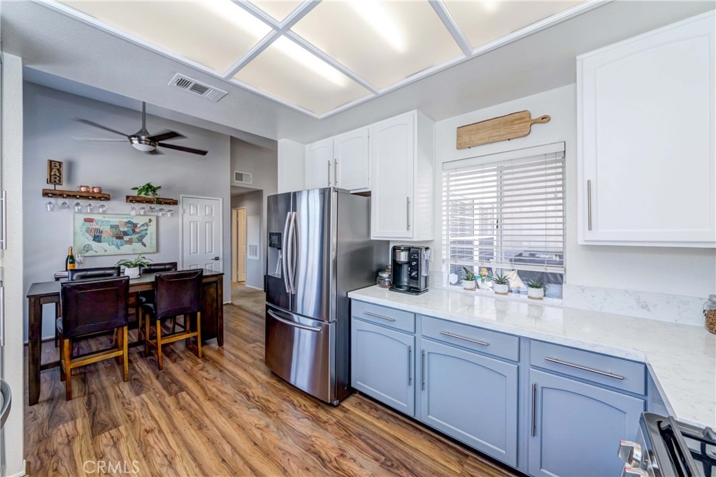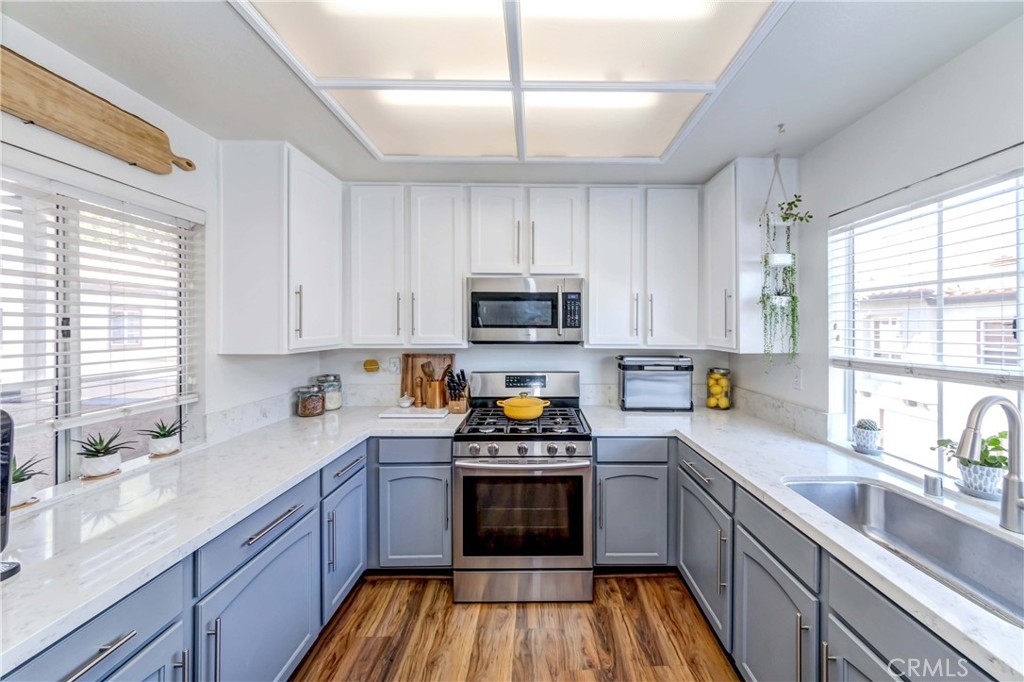 This beautiful 2-bedroom,2 bath, upper-level unit with a private garage and no one below or above is located in the community of Tijeras Creek Villas. As you enter this charming home, you are welcomed by abundant sunlight in this open concept living space. The living room boasts neutral toned carpeting with high ceilings and fireplace. The kitchen and dining room are complemented with hardwood flooring. The newly updated kitchen has two windows and recessed lighting which creates an inviting space. New stainless-steel appliances, new sink, faucet, garbage disposal, painted cabinets and Quartz countertops offer everything for the gourmet cook. The kitchen opens to the eating area which flows to the living room. Down the hall, the master bedroom offers sliding doors to a spacious and private balcony and an in-suite bathroom with a walk-in shower. The secondary bedroom is generously sized and adjacent to the full bathroom. Also featuring an indoor laundry closet, a spacious front balcony just outside the front door. The home has recently replaced the central air conditioner and a new garage door motor. Also featuring smart home technology with Nest Doorbell, Yale Lock, Nest Thermostats, and Smart garage door opener. Lovely location at the end of the corner unit and proximity to the community pool and large grassy area in this complex, overlooking the fifth hole of Tijeras Creek Golf Course. Home is member to SAMLARC with the lake/beach, pools, spas, tennis and pickleball courts. Nearby shopping & dining options, hiking & biking trails, 241 toll road and award-winning schools. This is the perfect place to call home!