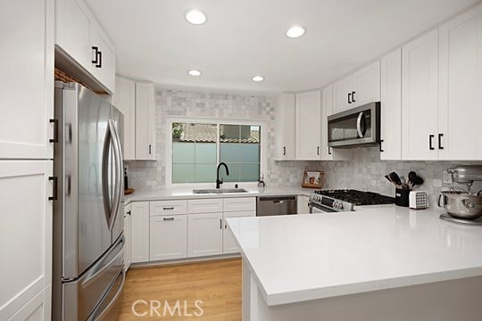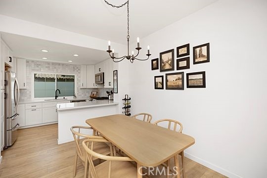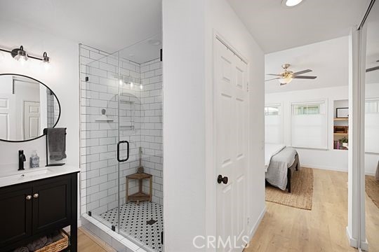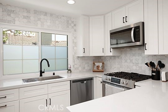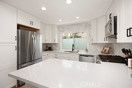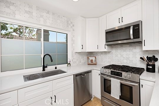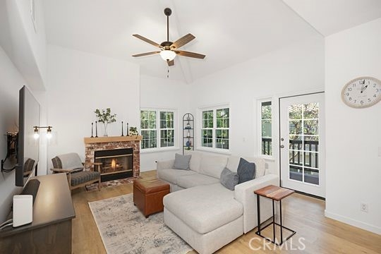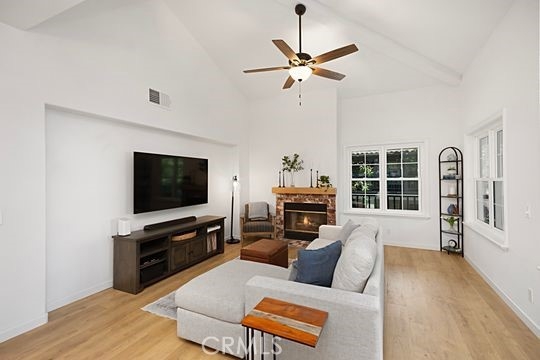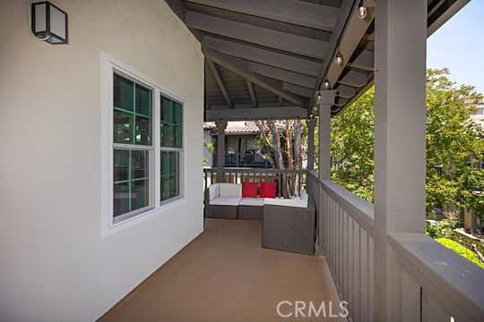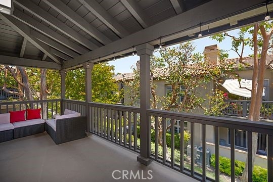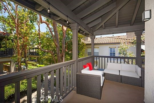 Largest model in complex. Indulge in this completely reimagined residence located in the highly sought-after Tijeras Creek community in picturesque Rancho Santa Margarita. Redesigned in 2022, this second level unit opens to a light-filled open floor plan brimming with desirable features including soaring vaulted ceilings, arched entryways, new windows— including double-hung picture windows in the living room and primary suite—new designer hardware and fixtures, and new luxury vinyl white oak wide plank flooring throughout. The redesigned chef’s kitchen is built for the culinary enthusiast and features new quartz countertops, white Shaker cabinetry, new marble backsplash, top tier stainless steel appliances, as well as seated bar, perfect for casual breakfasts and conversation. Enjoy delicious meals and celebrations in the dining area with chandelier, or unwind in the spacious living room with cozy fireplace and glass door opening to the wraparound deck, made for indoor/outdoor relaxation and entertainment. The primary suite offers total privacy and features new mirrored closet doors, new closet organizers, custom white oak built-in shelves, new top-down bottom-up blinds, resort inspired walk-in shower with timeless subway tile design, dual vanities, and private water closet. Step outside and enjoy the inviting Rancho Santa Margarita climate on the covered balcony, perfect for sunset refreshments, grilling, or entertaining. A second bedroom with walk-in closet is ideal for guests or family, and provides ample space for gym or yoga studio. Additional amenities include new electrical outlets, new plumbing in the kitchen and both bathrooms, new interior paint, and new baseboards throughout, as well as, in hall pocket door to laundry area. Tijeras Creek residents also enjoy access to two swimming pools and spas, barbecue and outdoor lounge areas, playground, fitness center, and multiple green spaces. Situated in one of the most peaceful neighborhoods in all of Orange County and minutes to several parks, award winning schools, Rancho Santa Margarita Lake, Beach Club Lagoon, Tijeras Creek Golf Course, hiking and biking trails, as well as an abundance of fine dining and retail, this immaculate home offers the quintessential OC lifestyle in a truly winsome and idyllic setting.