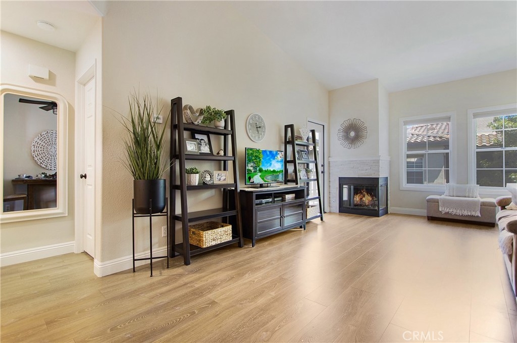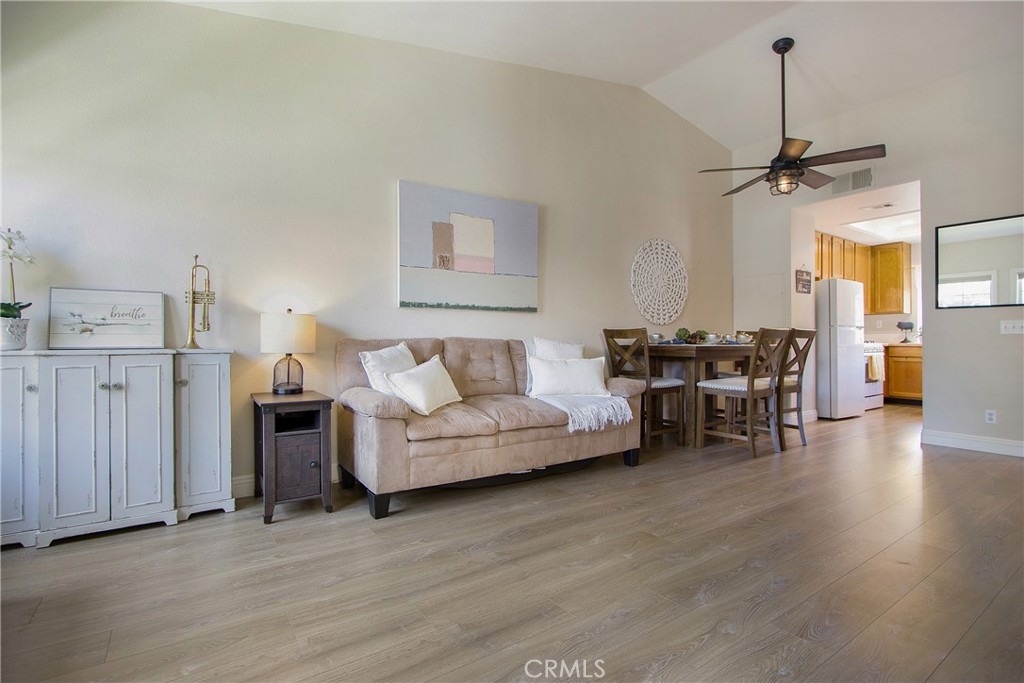 Stunning SUNRISE and SUNSET Views from this East-facing Quiet upstairs retreat with Vaulted ceilings! Walk to the main pool, spa, gym and saunas! Balcony access from both the bedroom and Living room. New faux-wood floors throughout, Custom paint, Custom closet organizer, indoor laundry closet with stack-unit. Custom Fireplace with stone and new gas logs, New oil-rubbed bronze hardware, Custom Wainscot, recessed lighting in kitchen. Detached garage also included. Lastly, your new home has the added city bonuses of a lake, beach club, pools, parks, trails and a golf course! Master planned community with plenty of shopping and fine dining! Still time to enjoy concerts in the park! Great location, light and bright, not backing up to any roadways…This is the one!!