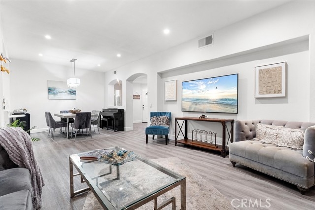 Beautifully remodeled lower-level condo in desirable Tijeras Creek Villas with no stairs to the unit or inside and a modern open-concept layout. This turnkey 2 bedroom, 2 bathroom home offers just shy of 1,200 sq ft of stylish living space filled with high-end finishes throughout. The upgraded kitchen is a true standout, featuring custom white cabinetry, quartz countertops, gray subway tile backsplash, and newer premium appliances including a Samsung 5-burner stove, Samsung pocket-door microwave, Bosch double-door refrigerator, and Bosch dishwasher. The living room centers around a remodeled fireplace with elegant porcelain detailing, creating a warm and elevated focal point. The spacious primary suite is enhanced with high-end LV flooring and upgraded closet doors, including a mirrored set. The primary bathroom was fully renovated with a luxury walk-in shower wrapped in Spanish stone tile, a double vanity with quartz countertop, and upgraded Kohler faucets and toilet. The second bathroom has also been remodeled with a sleek walk-in shower, transparent glass doors, and quality tile finishes. Additional improvements include a newer AC unit (Aug 2021), updated electrical throughout, recessed lights on dimmer, newer Whirlpool washer/dryer, and thoughtful storage features. Enjoy indoor-outdoor living with a covered wrap-around L-shaped patio accessible from both the living room and primary bedroom, finished with waterproof vinyl flooring that matches the interior plus artificial turf—perfect for entertaining. There is also a smaller patio that you can access from the 2nd bedroom. The home includes two detached single-car garages, one with a newer upgraded door and modern opener. Walk to Tijeras Creek Golf Club and enjoy resort-style community amenities including pools, spas, fitness room, BBQ areas, and access to Rancho Santa Margarita lake and Beach Club, parks, trails, and sports courts. Convenient to shopping, dining, and the 241 Toll Road. Did I mention the award wining schools? This shall not last.