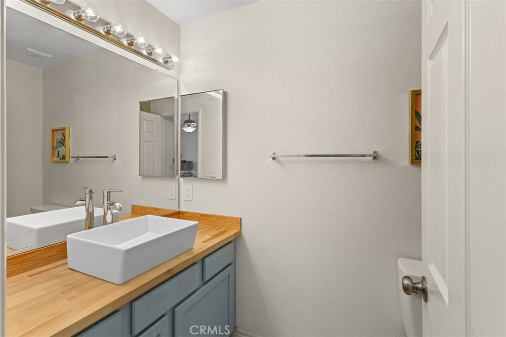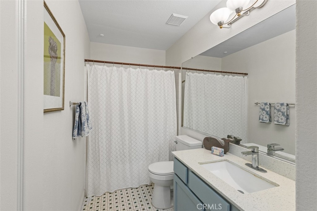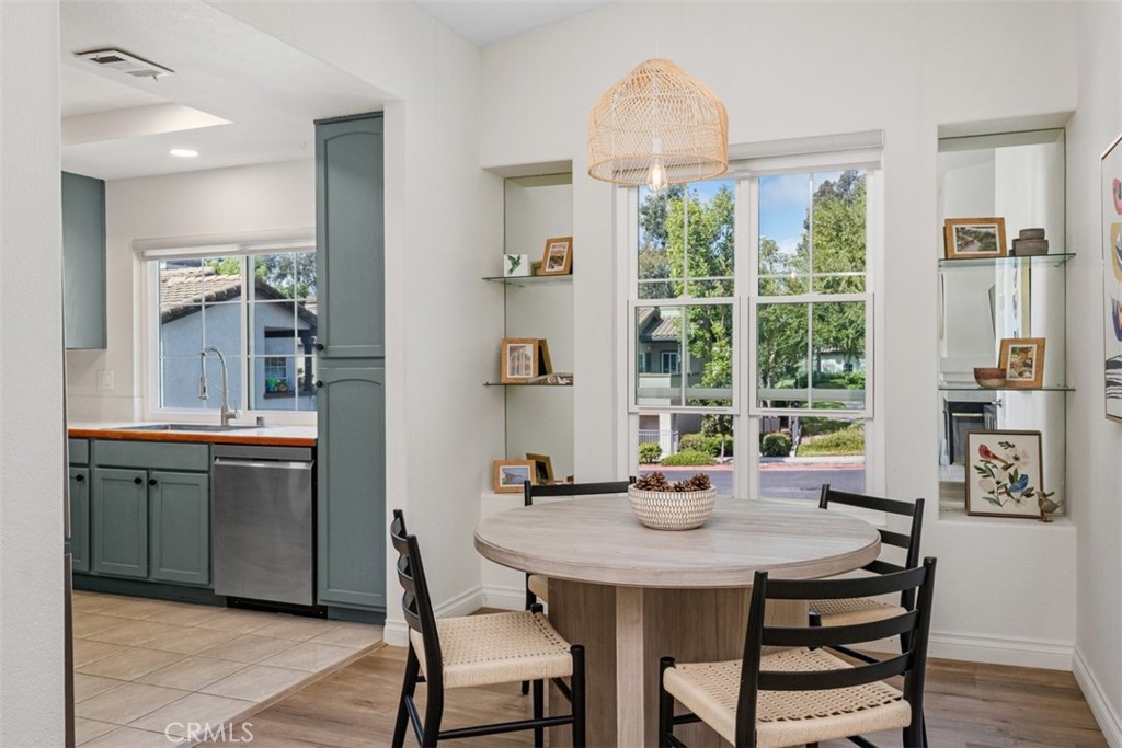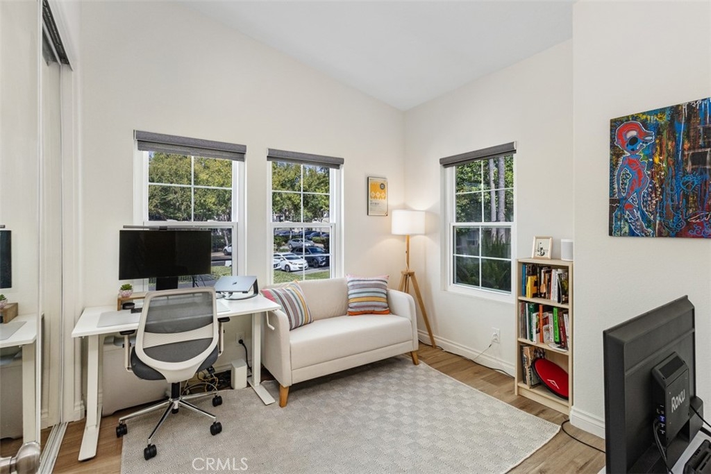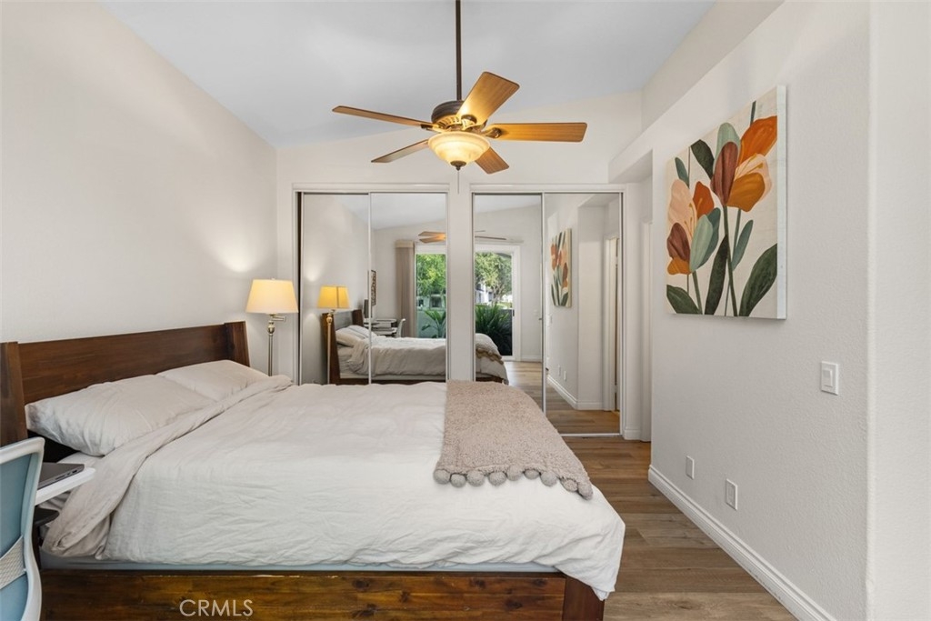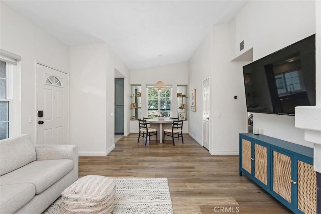 Welcome to this beautifully updated upper-level condo in the desirable Tijeras Creek Villas community of Rancho Santa Margarita! Offering over 900 sq. ft. of stylish living space, this 2-bedroom, 2-bath home combines comfort, convenience, and modern upgrades throughout. Step inside to find a light and bright open floor plan with vaulted ceilings and large new windows that fill the space with natural light. The family room features a cozy fireplace and an open floorplan, creating the perfect backdrop for relaxing or entertaining. The kitchen boasts new recessed lighting, updated outlets, and all appliances included, seamlessly opening to the dining area with a new, modern light fixture. The primary suite offers access to a private balcony through a brand-new dual-pane slider door, perfect for morning coffee or evening breezes. Additional highlights include luxury vinyl wood flooring, new blinds (except in the primary bedroom), and fresh upgrades throughout, including smoke and carbon monoxide units. Enjoy the convenience of a one-car garage below the unit, plus community amenities like two sparkling pools/spas and a fitness center, all just steps away. Additionally, as members of SAMLARC, you'll enjoy amenities like pickleball courts, tennis courts, pools throughout RSM, the lake, clubhouses, the beach club, and much more! This turnkey home blends stylish living with a fantastic location near parks, shopping, dining, and top-rated schools — all within the heart of Rancho Santa Margarita.