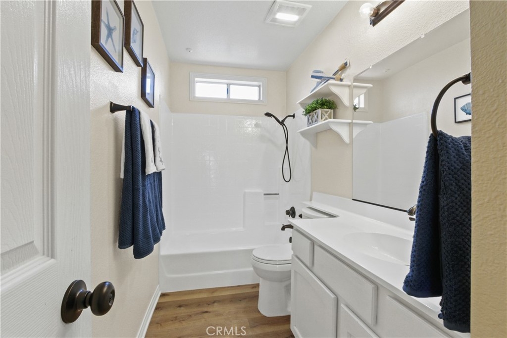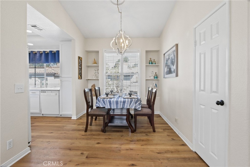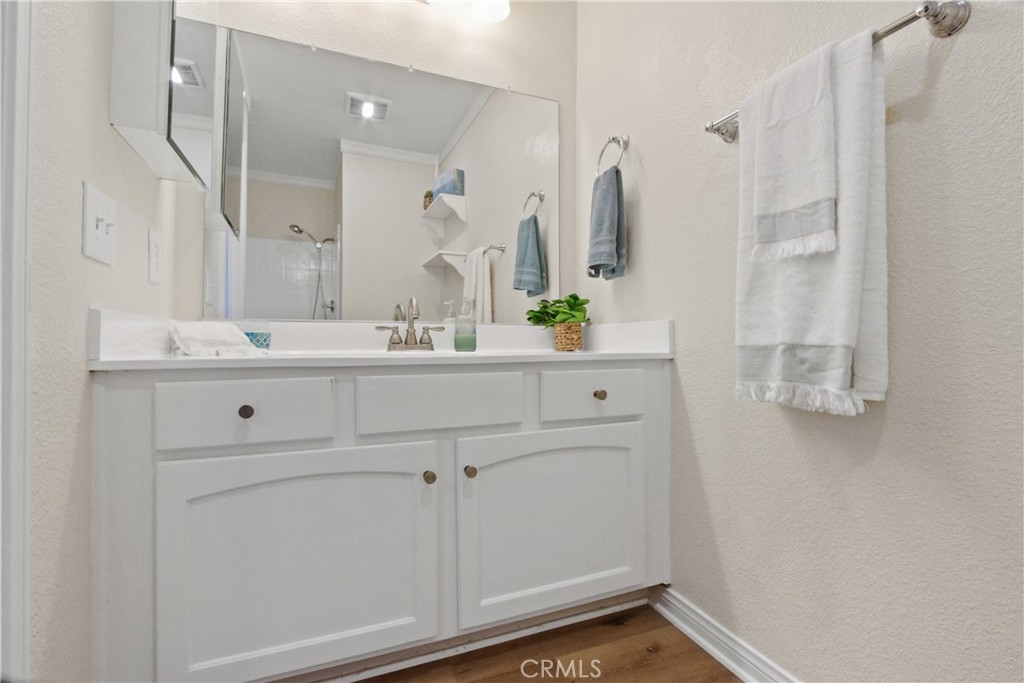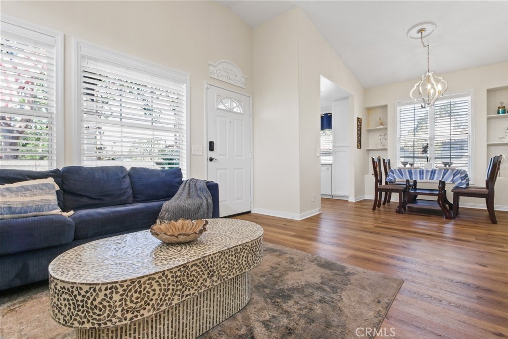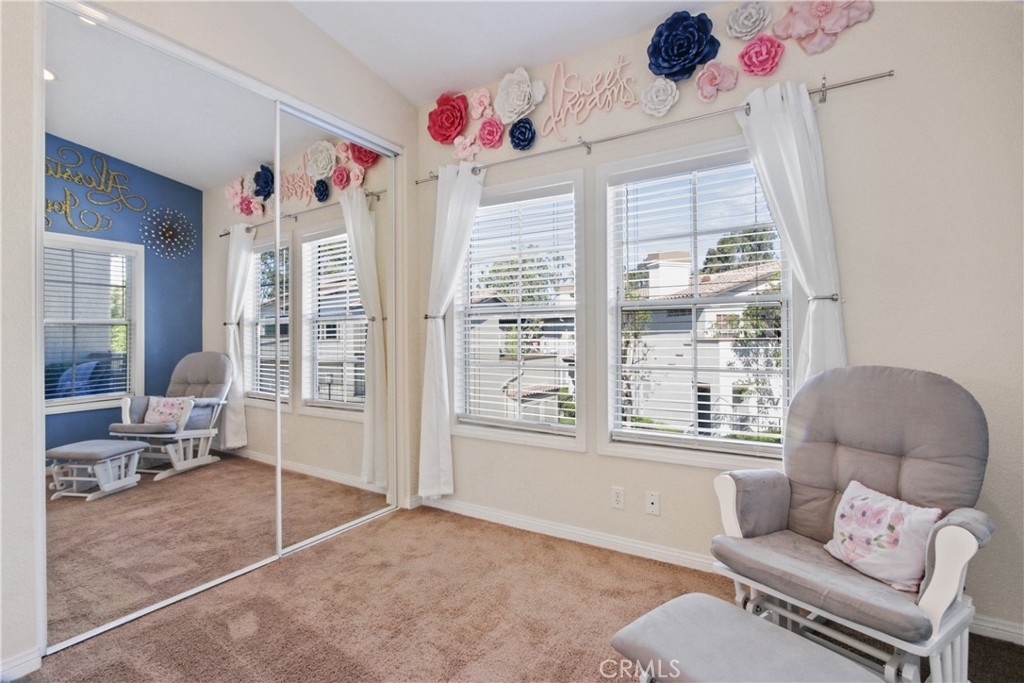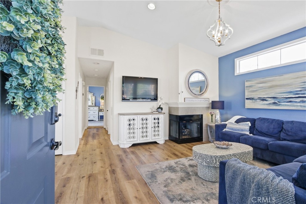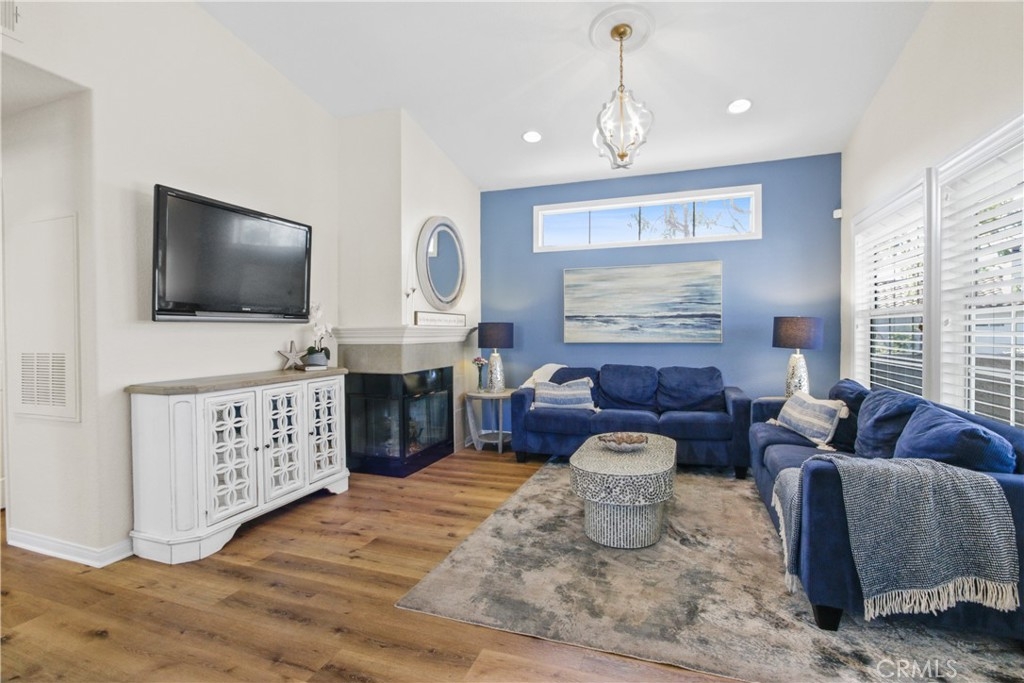 This move-in ready upper-end unit with no unit below features 2 bedrooms and 2 bathrooms, nestled in the Tijeras Creek community at the heart of Rancho Santa Margarita, renowned as one of California's safest cities. Step into the inviting living room with an open floor plan, warm laminate wood floors, vaulted ceilings, and a cozy fireplace. The living room flows seamlessly into the dining room and kitchen, where a beautiful window above the sink enhances the spacious feel alongside ample cabinet space for storage. The spacious master bedroom offers sliding doors to a private balcony, an en-suite bathroom, and new mirror sliding closet doors with a custom closet organizer. The secondary bedroom boasts high vaulted ceilings, new sliding closet doors, and access to a full hall bathroom with a shower/tub combo and plenty of sink space. Additional features include an indoor stackable laundry closet, a one-car detached garage, and an extra parking space. Enjoy outdoor gatherings on the spacious gated front patio, ideal for BBQs and entertaining. This condo has been upgraded with new lighting fixtures, flooring, refinished kitchen & bathroom counters, refinished sinks, refinished shower & tubs, sliding closet doors, and paint. Community amenities include 2 recently renovated swimming pools and spas, BBQ areas, a fitness center, a sauna, tot lot, newly installed stairs, and recently painted exteriors. Residents also benefit from access to RSM Lake, Beach Club Lagoon, 4 pools, 13 parks, walking trails, Tijeras Creek Golf Course, and a wealth of shops and restaurants. Move in just in time to savor everything RSM has to offer this summer!