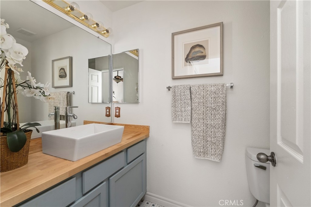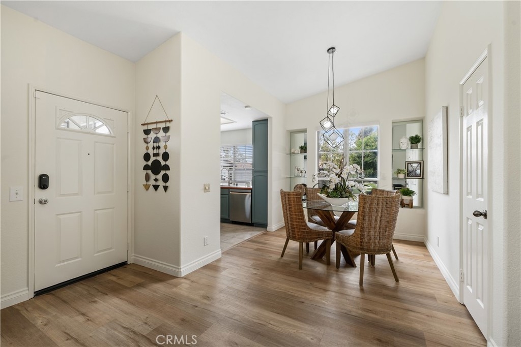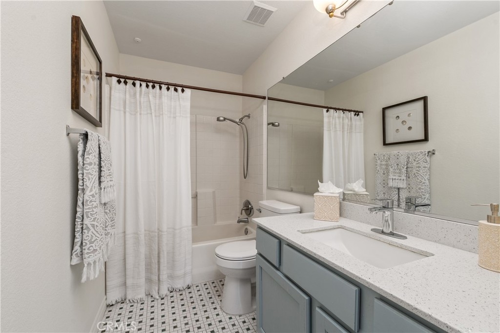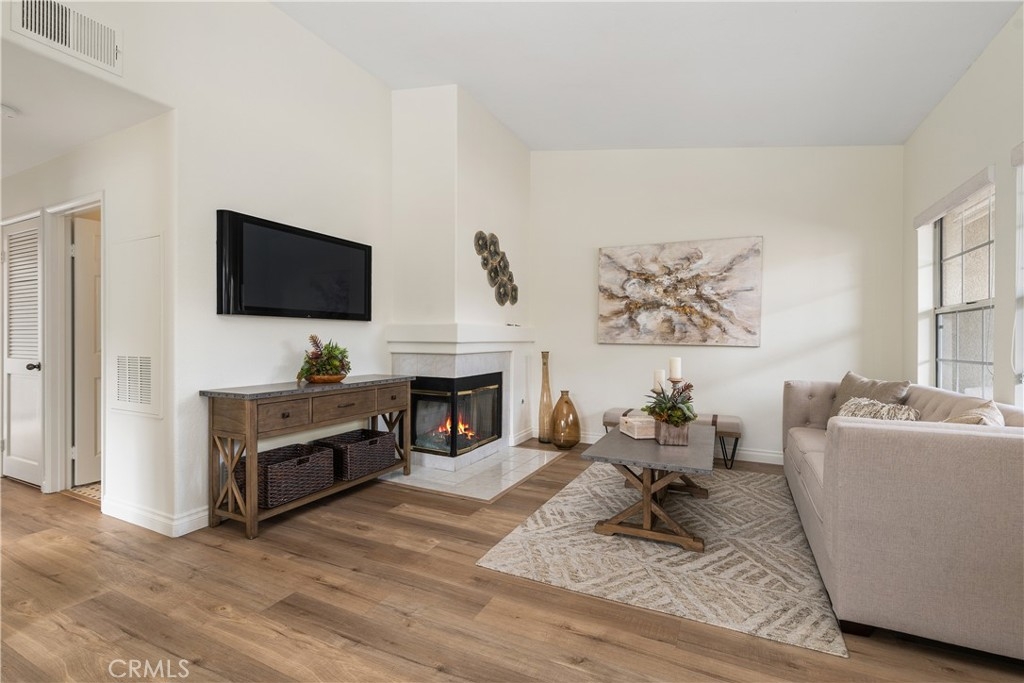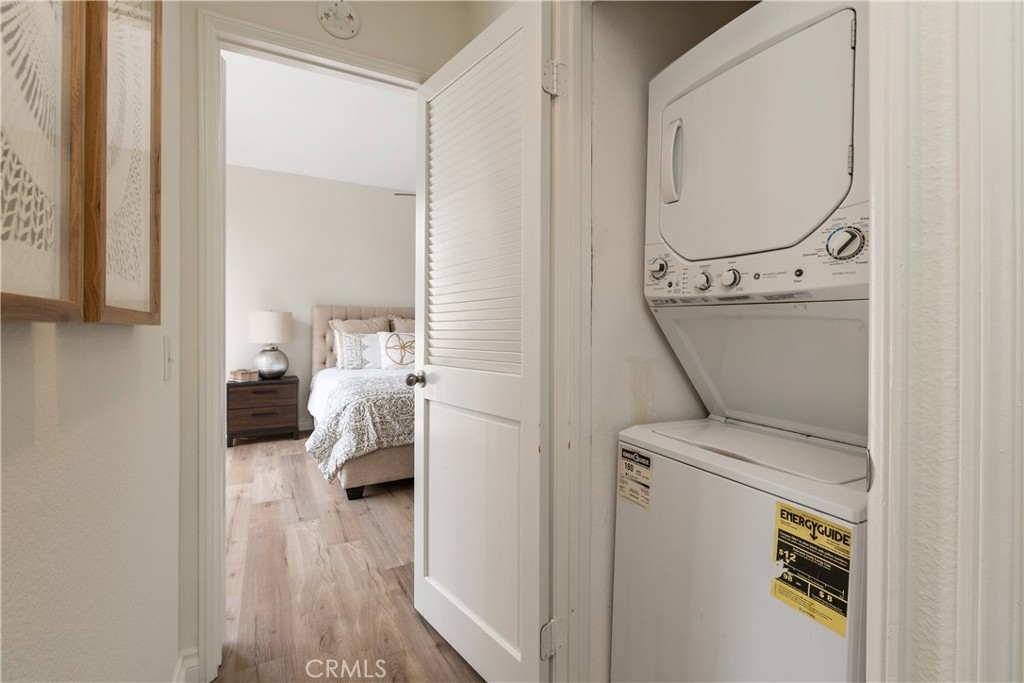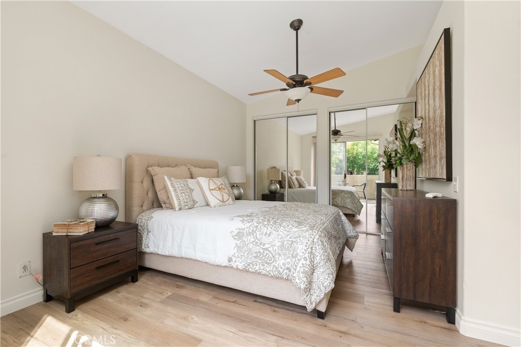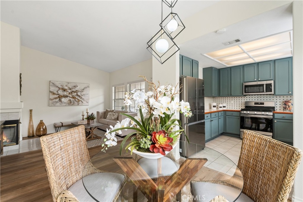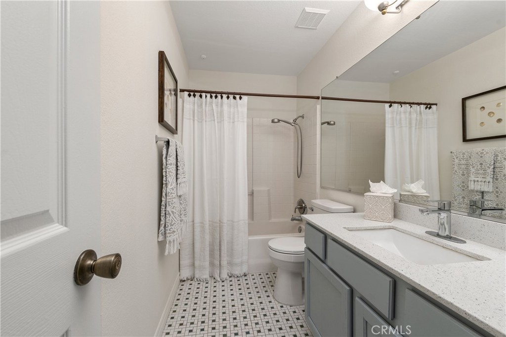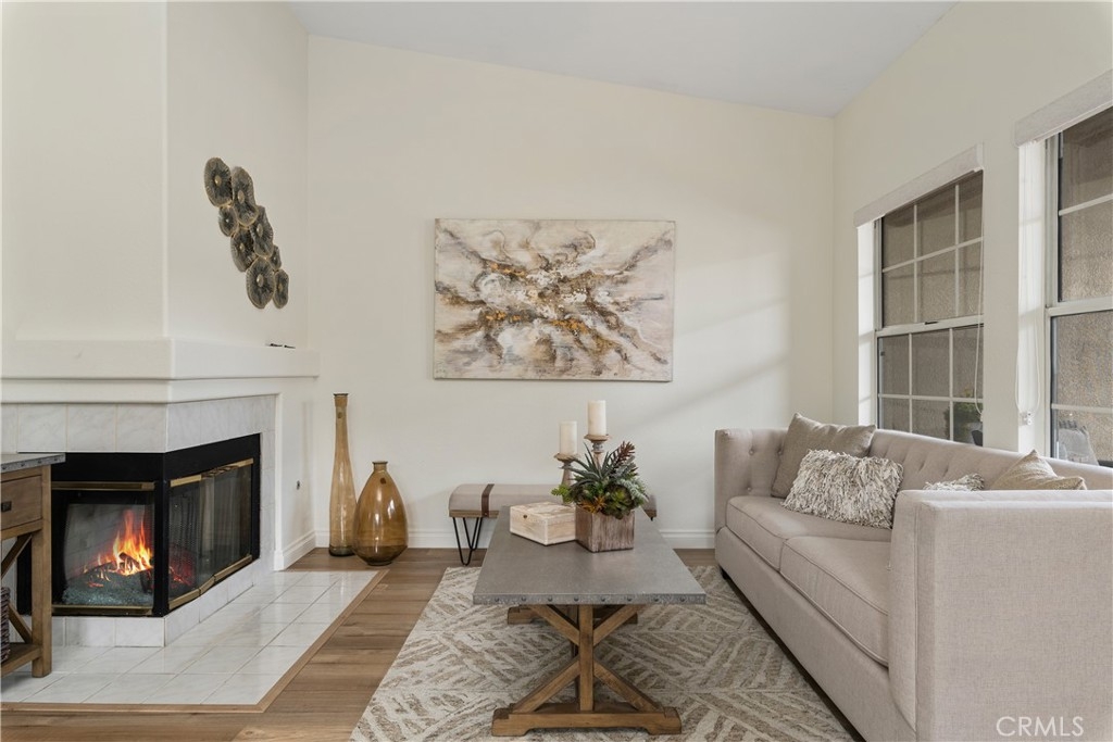 Welcome to this charming upper-level unit located in the Tijeras Creek community. With only one shared wall and no one above or below. As you approach the property, you'll be greeted by a welcoming front porch, creating a warm and inviting entrance. Upon entering, you'll be greeted by an abundance of natural light that fills the space, accentuated by the vaulted ceilings. The living room, adorned with a cozy fireplace, sets the tone for comfort and relaxation. The kitchen seamlessly connects to the dining area, creating an open-concept layout. In the hallway, a stackable laundry closet provides added convenience. Further down the hall, the master bedroom offers sliding doors to a private balcony and is complete with en-suite bathroom. The interior has been recently upgraded with a fresh coat of paint. The bathrooms have also been enhanced with new vanities, faucets, and toilets, while the kitchen features a new sink and garbage disposal. Windows have blinds. The garage has been equipped with new wall shelves for additional storage and organization. Tijeras Creek Villas offers exceptional amenities, including two association pools, two hot tubs, fitness room, sauna, playgrounds, and BBQ areas. The SAMLARC master association also provides access to additional amenities such as the lake, beach lagoon, pools, various sports fields and courts, picnic shelters, numerous parks, community events, and more! This home is located within the award-winning Arroyo Vista Elementary and Middle schools. The Tijeras Creek Villas community is surrounded by shopping and dining options. Schedule a viewing today and experience all that this community has to offer!