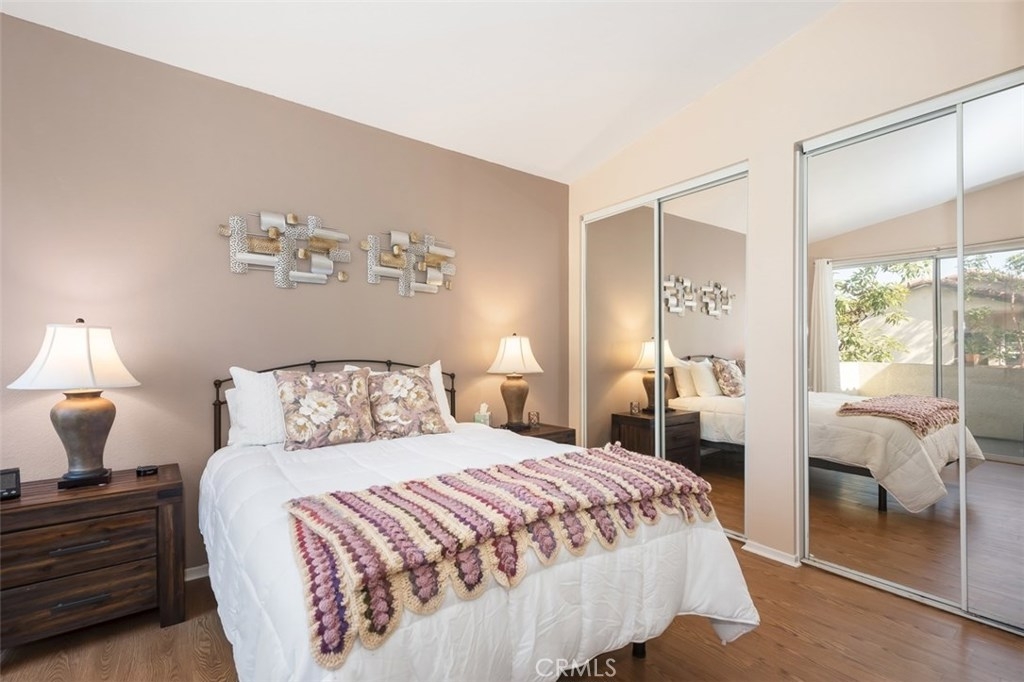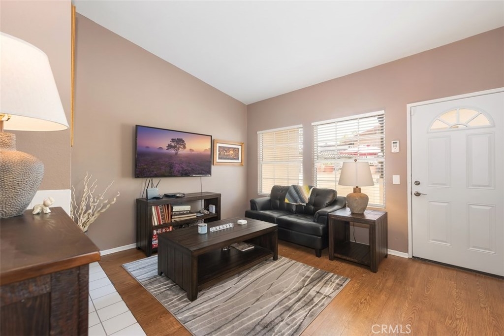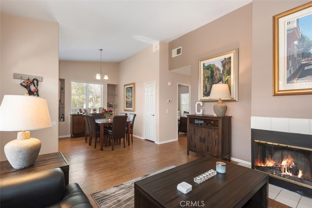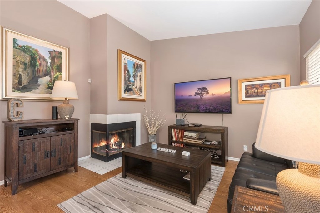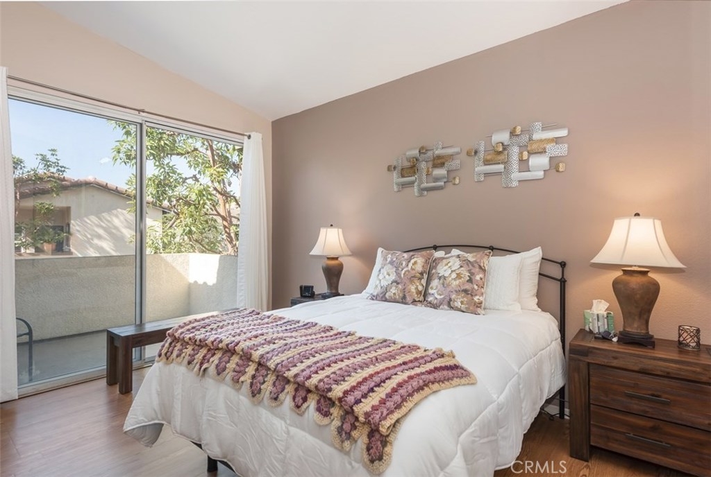 This spectacular Tijeras Creek Villas condo is located in the wonderful city of Rancho Santa Margarita. Highly sought after 2 bedroom condo greets you with hardwood floors encompassing vaulted ceilings and large windows that brings in an abundance of natural light. You'll love the sunny kitchen, boasting white cabinetry, tile countertops and ample cabinet space. Your clients will love the spacious living room and adjoining dining area perfect for entertaining. Custom appointments include recessed lighting, cozy gas fireplace and freshly painted interior in neutral colors. Boasting a large bedroom with two mirrored closet doors, a sliding glass door leading directly to an outdoor space and upgraded bathroom. The sunny wrap-around balcony is the perfect place to relax after a long day and has ample room for your favorite plants. Convenient and secure one car garage. The location is close to the community pool and playground. This condo is priced to sell and will not last long so run don’t walk or you’ll miss out on this perfect investment!