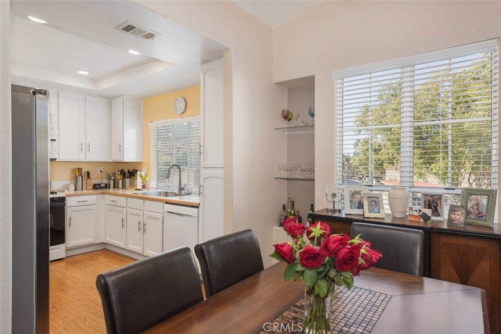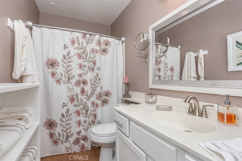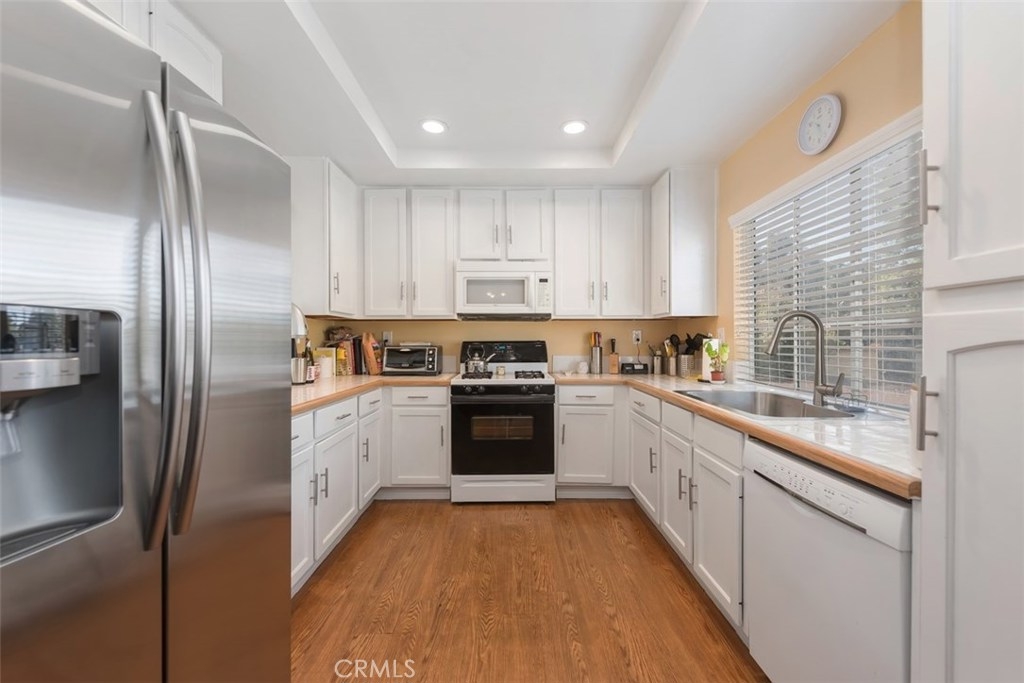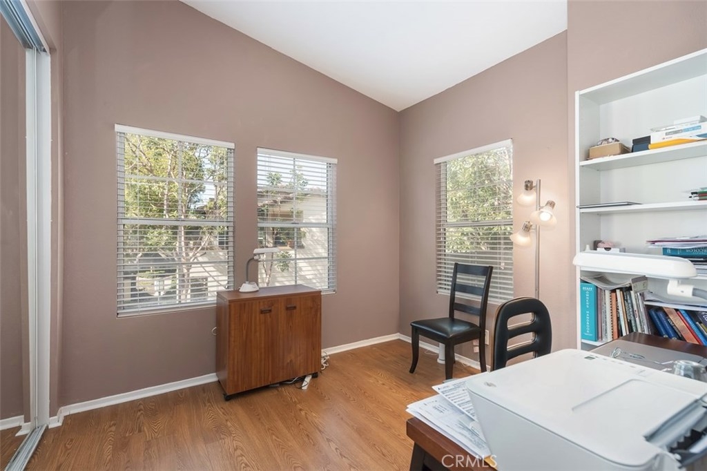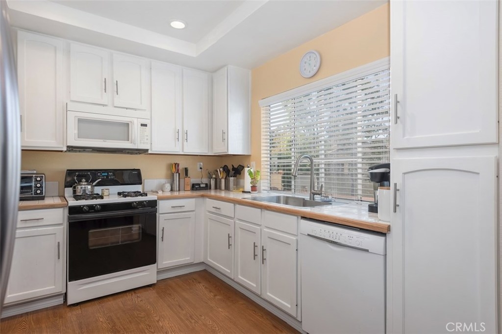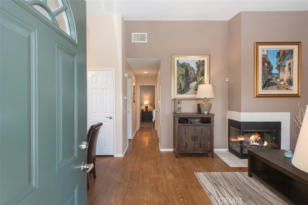 This spectacular Tijeras Creek Villas condo is located in the wonderful city of Rancho Santa Margarita. Highly sought after 2 bedroom condo greets you with hardwood floors encompassing vaulted ceilings and large windows that brings in an abundance of natural light. You'll love the sunny kitchen, boasting white cabinetry, tile countertops and ample cabinet space. Your clients will love the spacious living room and adjoining dining area perfect for entertaining. Custom appointments include recessed lighting, cozy gas fireplace and freshly painted interior in neutral colors. Boasting a large bedroom with two mirrored closet doors, a sliding glass door leading directly to an outdoor space and upgraded bathroom. The sunny wrap-around balcony is the perfect place to relax after a long day and has ample room for your favorite plants. Convenient and secure one car garage. The location is close to the community pool and playground. This condo is priced to sell and will not last long so run don’t walk or you’ll miss out on this perfect investment!