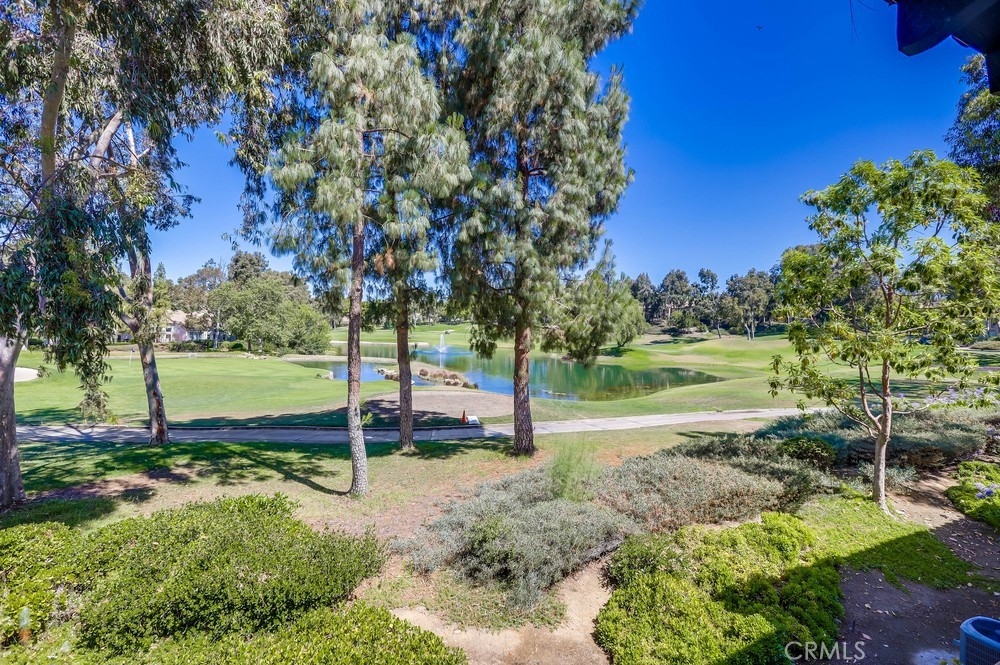 Welcome to 67 Via Pausa, a beautifully updated upper-level condo nestled in a tranquil, private pocket of Rancho Santa Margarita. Property boasts golf and lake views. Located in a charming courtyard-style setting, this home offers a peaceful front approach with paved walkways and lush greenery that create a serene first impression. Inside, you’re greeted by a stylish bathroom to the left—featuring elegant grey marble stone accents and a true in-home steam sauna shower, complete with a glass enclosure, ceiling-mounted rainfall showerhead, and a pebble-tiled floor. A unique diagonal vanity finished in warm light wood tones completes the space. The space then opens into a bright, spacious living room filled with natural light, anchored by a cozy fireplace, with large windows and direct access to a private balcony. The adjacent kitchen has been updated with sleek quartz countertops, modern appliances, a large farmhouse-style sink, soft-close drawers, and crisp white cabinetry, creating a bright and functional workspace with ample storage. The generously sized bedroom offers a peaceful retreat with mirrored sliding closet doors and its own access to the balcony. The private balcony is a true highlight, offering a panoramic view of the lush golf course, a sparkling lake, and mature trees. Additional conveniences include a stackable washer/dryer unit and a detached garage providing secure parking and extra storage. Residents of this vibrant community enjoy access to outstanding amenities, including a beach club, 13 parks, multiple community pools, sports courts, and extensive hiking and biking trails—along with highly rated nearby schools. 67 Via Pausa combines modern updates, abundant natural light, and sweeping views in a serene community setting. Move-in ready and full of charm, this home offers an ideal blend of comfort, style, and lifestyle in highly desirable Rancho Santa Margarita.