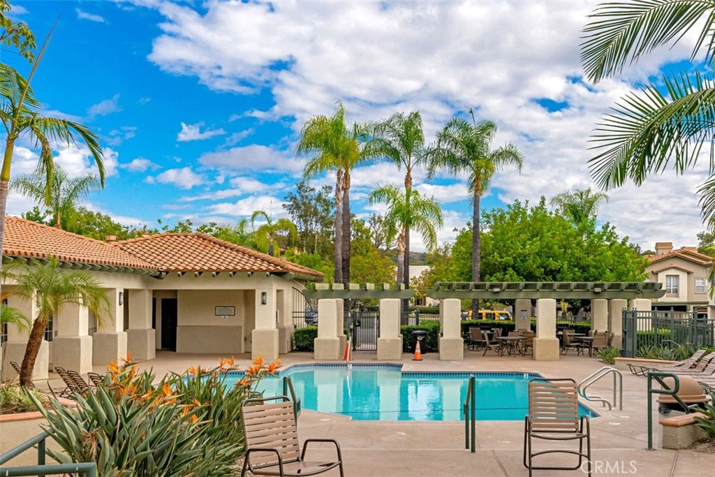 Charming single-level 2 bedroom 2 bath condo in the admired Tijeras Creek community. This cozy condo has an inviting floorplan that is bright and airy. Spacious living room with a homey fireplace. Bright and spacious kitchen with refrigerator, dishwasher, stove, lots of cabinets and counter space. The two bedrooms are located on the opposite sides of the condo, great for privacy. Separate closet in the hallway with a stackable washer and dryer. The AC is newer and the condo has been recently re-piped (July 2021). This unit also offers 1 carport parking space, and 1 car garage within close proximity to the unit. Exterior features a huge wraparound patio for outdoor relaxing and BBQ. This home is located within walking distance to the award-winning Elementary and Middle school Arroyo Vista. Tijeras Creek Villas offers great lifestyle amenities including 2 pools & spas, parks, playgrounds and barbecues. Master association offers 13 parks, 4 pools, a beach club and lagoon, lake with water sports, Lakeshore Park with fitness stations, nine trails, sports fields, and community events. As added bonuses, there is also great nearby shopping and dining, and easy freeway access. Perfect location and lots to love and enjoy with this picturesque home.