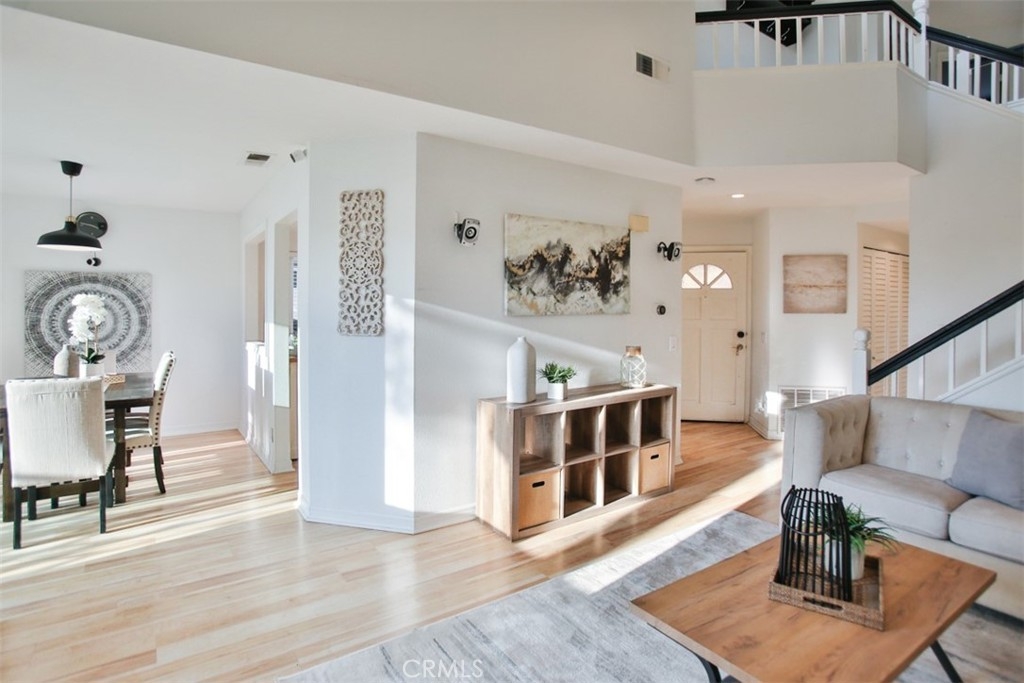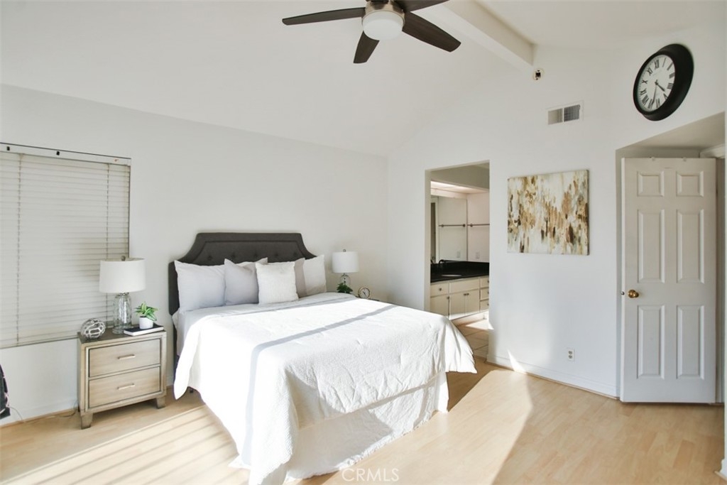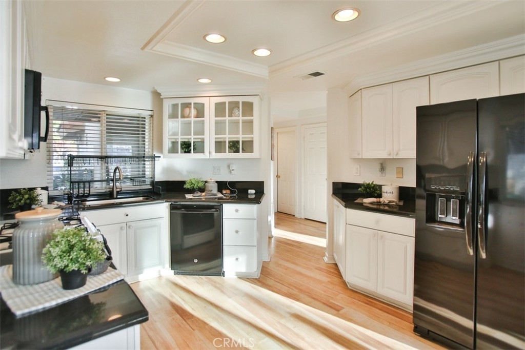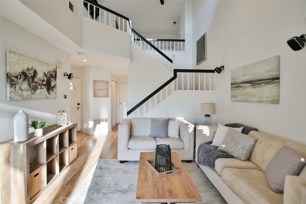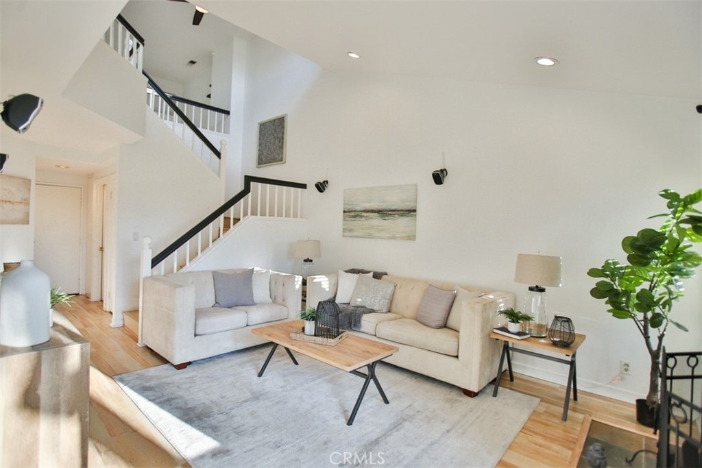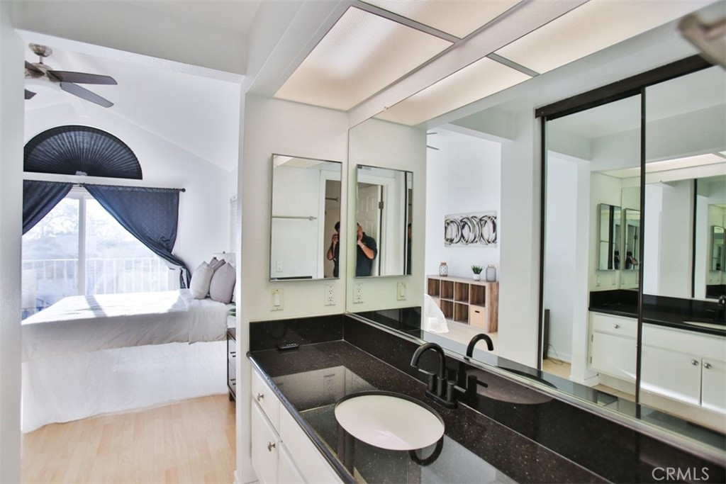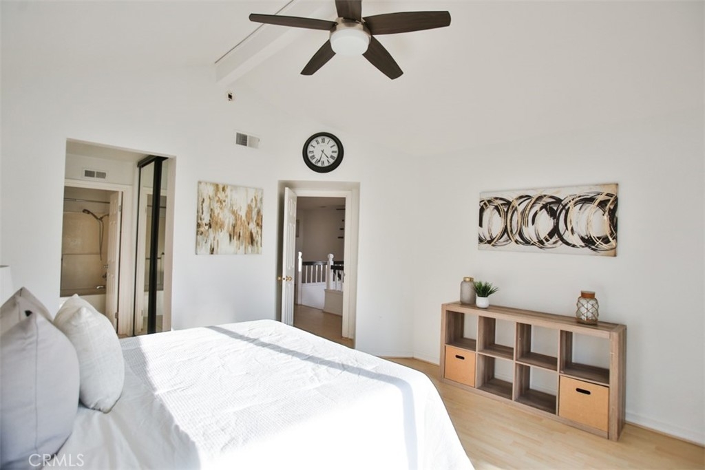 Step into a world of luxury and convenience in this stunningly upgraded home, perfectly situated just minutes from the serene RSM Lake. Imagine yourself sipping morning coffee with breathtaking views from your upper balcony, or enjoying the vibrant community life with access to 7 pools, including the exclusive RSM beach club, and annual fireworks shows right at your doorstep! This home is a true gem, featuring not one, but two master suites, each promising privacy and comfort, complemented by a spacious loft that adds an airy feel to the already expansive living space. The heart of the home, a recently remodeled kitchen, boasts sleek black granite countertops and sophisticated cabinetry, perfect for hosting and everyday elegance. The living room, pre-wired for surround sound, sets the stage for unforgettable movie nights and cozy gatherings. Enjoy the added convenience of new vinyl double-pane windows and sliding doors installed in 2020, ensuring quiet and energy efficiency. The primary bedroom enchants with its unique half-moon window, adding a touch of charm. Storage is plentiful, with ample cabinetry in the garage, complete with a handy sink and a digital sprinkler system in the backyard to make life easier. The home includes a new AC condenser installed in 2016, enhancing comfort throughout the seasons. Privacy is paramount in this end unit with only one shared wall. Direct access from the two-car garage, supplemented by an additional outside parking pass, makes coming and going a breeze. The thoughtful layout includes a direct backyard access, allowing for more functional use of garage space as waste bins are kept outside. This home isn’t just a living space, it’s a lifestyle upgrade waiting for you to claim it!