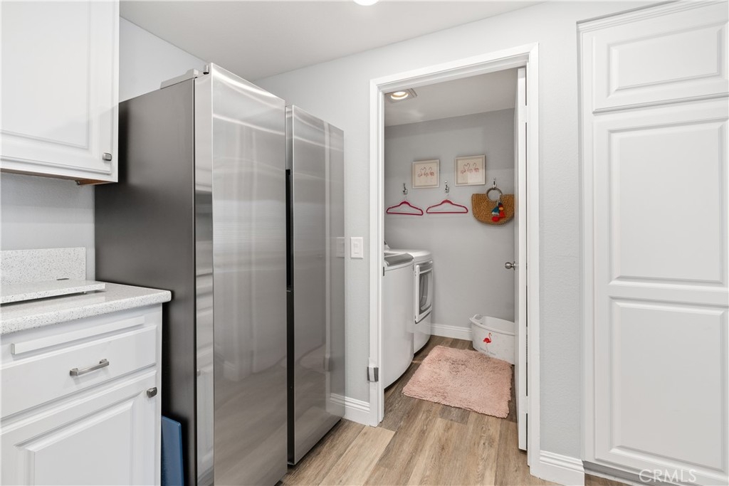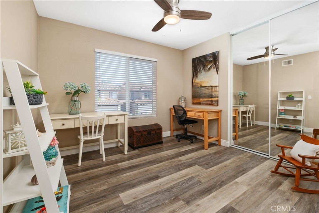 GEORGEOUS MOUNTAIN VIEWS! Don't miss out on this bright, upstairs, corner unit in the desirable Vista La Cuesta neighborhood. This updated 2 bedroom/2 bathroom home has newer duel paned windows, a beautifully upgraded kitchen, LVP flooring throughout & much more. The primary suite is a retreat with vaulted ceilings, two closets and overlooks the pool area which is in the process of being completely remodeled. The summer fun will be a blast being this close to the sparkling pool. The spacious living room has vaulted ceilings & a cozy gas fireplace to curl up in front of on those chilly winter nights. This home also has a generously sized outdoor patio for grilling or just relaxing while looking at the view of the mountains. It also has a detached single car garage & comes with one assigned parking space. This unit also includes an inside laundry room that includes a full sized washer and dryer. A short walk to RSM Lake or Trabuco Mesa Park. The SAMLARC amenities include RSM Lake, Beach club, parks & more! This RSM location can't be beat!