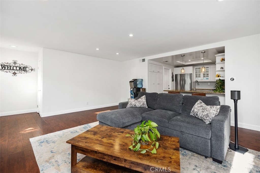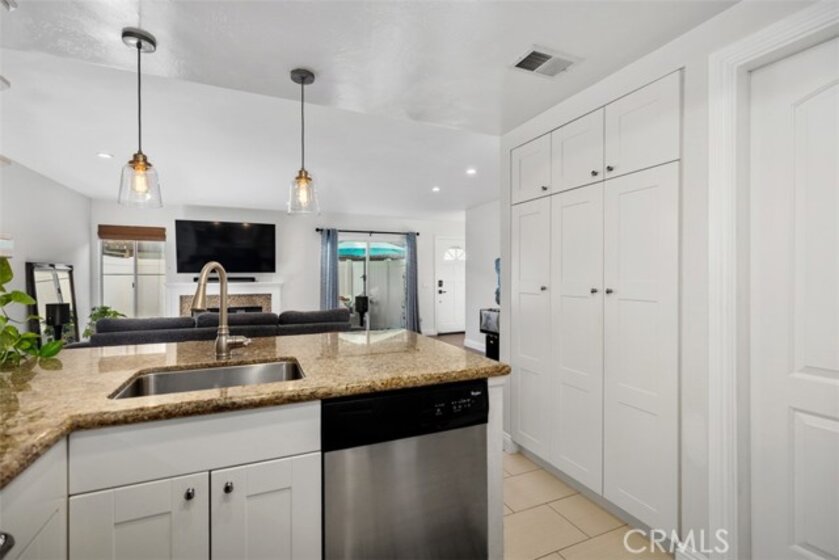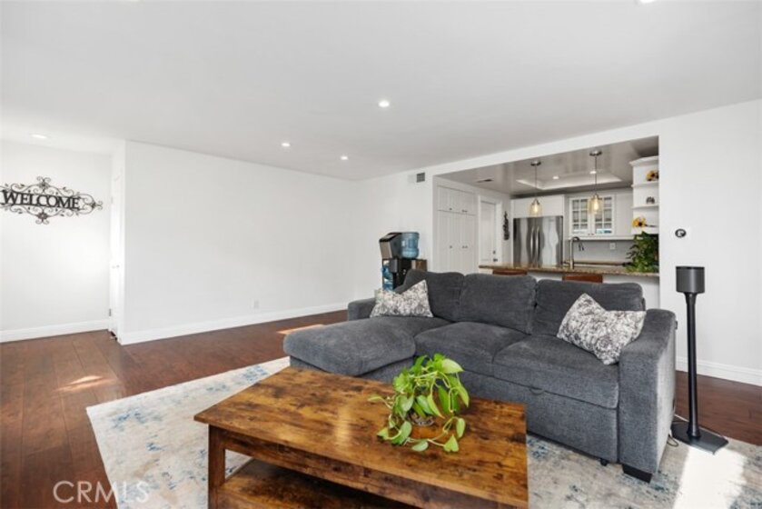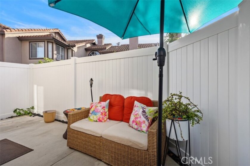 Perfectly positioned in one of Rancho Santa Margarita’s most desirable settings, just moments from the tranquil shores of Santa Margarita Lake and the rolling trails of O’Neill Regional Park, this exquisitely updated single-level end-unit residence offers an exceptional blend of sophistication, comfort, and effortless living, with no interior or exterior stairs. This elegant 2-bedroom, 2-bathroom home features a direct-access private garage and an additional assigned parking space. Inside, a light-filled, open-concept layout is thoughtfully curated with warm wood flooring, recessed lighting, and designer interior doors, creating an inviting yet refined ambiance throughout. The beautifully remodeled kitchen is both stylish and functional, showcasing crisp white cabinetry, a spacious pantry, gleaming granite countertops, and a generous breakfast bar ideal for casual dining and entertaining. A full suite of stainless steel appliances—including a refrigerator, gas range, microwave, and dishwasher that completes the space, while a newly installed kitchen floor adds a fresh, polished touch. Both bathrooms have been elegantly reimagined with high-quality finishes. The secondary bath features a deep soaking tub with a custom tiled surround, complemented by a quartz vanity and upscale fixtures. The primary bathroom evokes a spa-inspired retreat, offering an expansive shower with a built-in bench, dual shower heads, and a frameless glass enclosure, along with an oversized vanity and refined detailing. The primary suite serves as a peaceful sanctuary, complete with generous closet space and an additional mirrored wardrobe. Thoughtful upgrades throughout the home include a newer washer and dryer, an upgraded A/C system, and a full home re-pipe. The garage has been meticulously enhanced with an epoxy-coated floor, a Tesla charging station, and a Halo whole-home water filtration system. Residents enjoy exclusive access to a community pool and spa, along with the premier lifestyle amenities of Rancho Santa Margarita, including the lake, beach club, resort-style pools, spas, sports courts, parks, and scenic picnic areas. With a low property tax rate and an enviable location surrounded by natural beauty, recreation, and everyday conveniences, this exceptional residence offers a rare opportunity to experience elevated Orange County living at its finest.