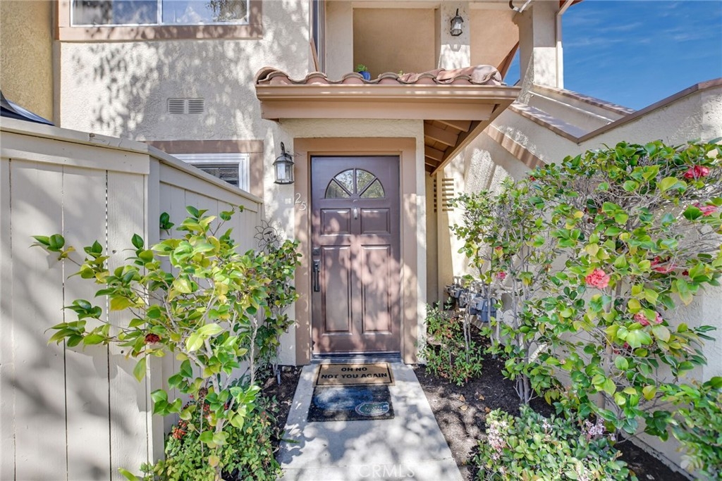 Looking for a spacious condo with resort style amenities? 25 Vista Colinas, the finest condo in Vista La Cuesta of Rancho Santa Margarita is the home for you. The moment you enter, you will feel the comfort of this inviting, open floor plan. The kitchen was redesigned to create space for gathering and conversation, open to the large family room and dining area. This updated kitchen features high-end cabinetry with soft close features, a lazy-susan, farmhouse sink, under cabinet lighting, custom backsplash and a fantastic pantry. The focal point in the family room can be either the cozy gas fireplace or your entertainment center. This room is delightfully accessible from the kitchen or your outdoor patio, allowing you to enjoy the natural light and fabulous weather of southern California. Moving toward the back of the home you will find the guest room, guest bath and primary suite. The primary suite has ample closet space and room for a Cal king bed. The ensuite bathroom features a walk in shower and updated vanity. The sellers have upgraded the lighting throughout with LED flood lights, reading lights in the primary suite and lighted ceiling fans. In addition, the flooring has been updated, an Eco Bee smart thermostat is installed, Crown molding, custom shutters and upgraded baseboards, and the plumbing & water heater are new! This ground level, corner unit includes direct access to the extra deep garage with storage racks and laundry (washer and dryer included). Enjoy close access to your community pool & spa, along with membership to all of SAMLARC amenities which include 13 community parks, 4 pools, the Beach Club Lagoon, the Lago Santa Margarita, 9 trails, a variety of sports fields and courts, picnic shelters, 2 amphitheaters, and an abundance of park space where Members can gather together.