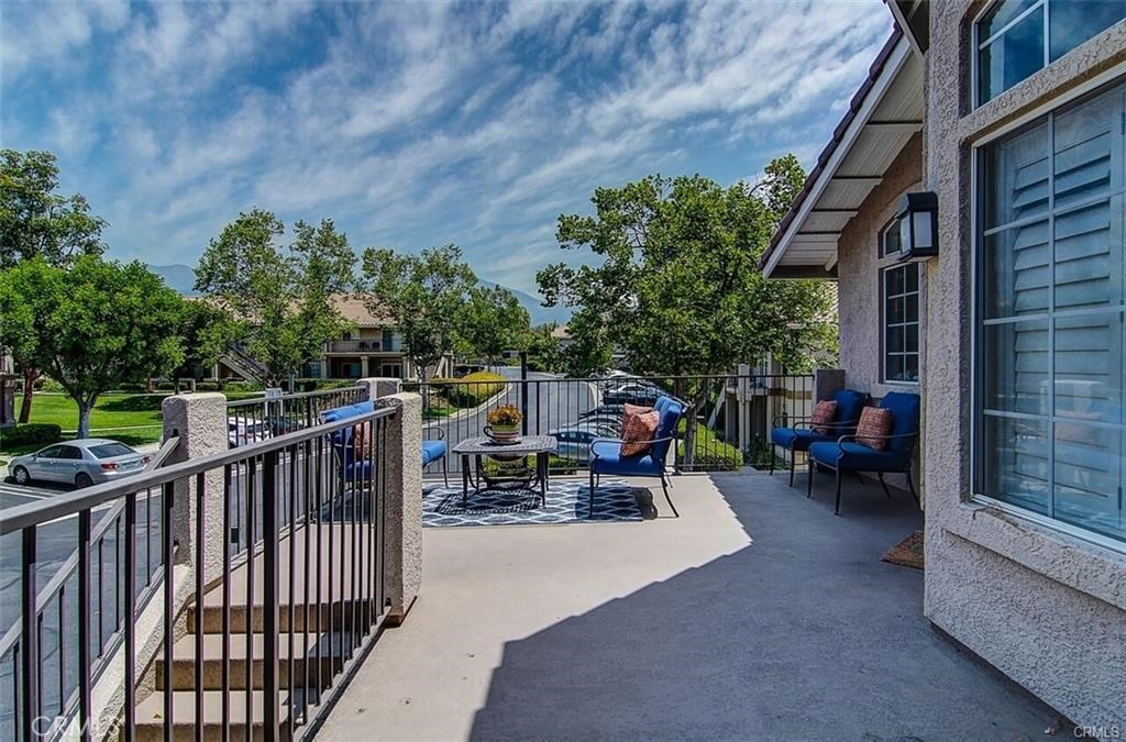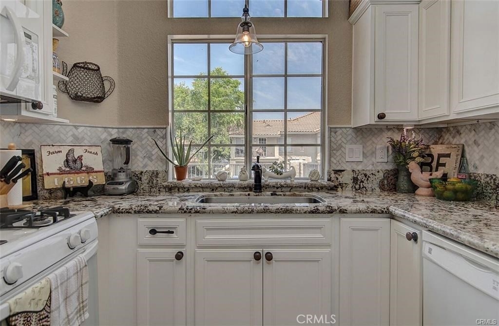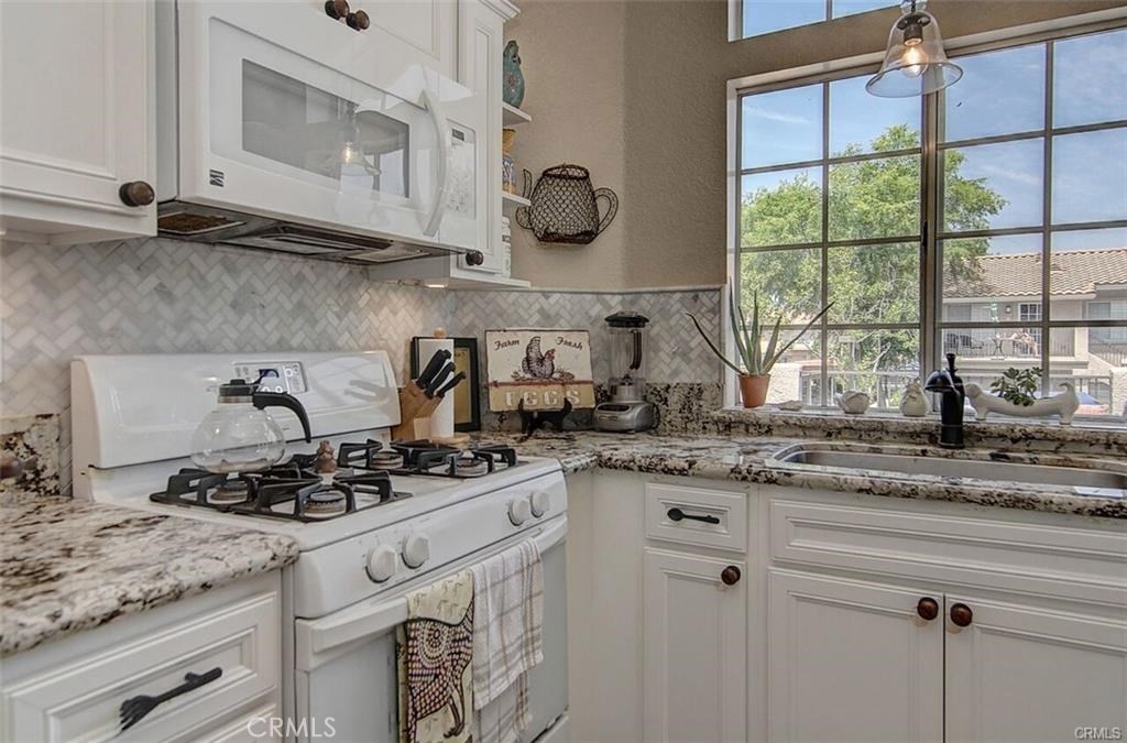 Gourmet kichen, granite counters with marble backsplash. Large high cathedral ceilings, master bedroom. Plantation shutters through out. Large walk-in closet in master bedroom. Large and bright end unit. One car attached garage with storage. Large wrap around Balcony. Enjoy beautiful pool and spa, gorgeous parks. The best Rancho Santa Margarita has to offer. Close to schools, parks, lake, hiking trails, beautiful mountain views. Large spacious bedroooms, master has high catherdral ceilings, large bright arched windows. End unit with large entertainers patio. Kitchen is beautifully remodeled beautiful granite counter tops with marble backsplash. Light and bright unit that has attached one car garage with storage. Wonderful, peaceful . A great place to raise a family. Ammeneties include large swimming pool, jacuzzi. Parks for the young ones. A wonderful environment. Pride of ownership is an obvious enjoyment in Belflora Community. Quiet and Peaceful, enjoy to call this home. Rarely on the market.
