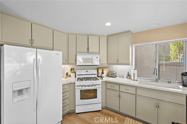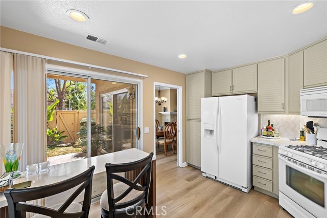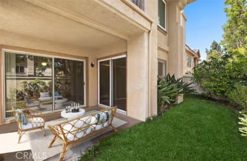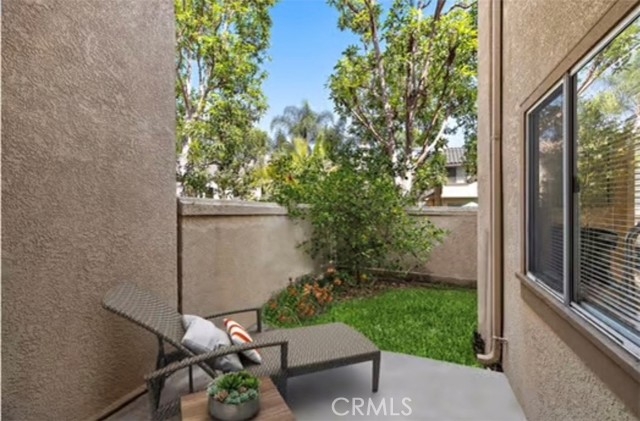 Welcome to 1 Encantado Canyon, a beautifully updated single-story end unit located in the sought-after Belterraza community of Rancho Santa Margarita. This light-filled 1,230 sq ft home features vaulted ceilings, an open-concept layout, an inviting fireplace, and stylish wood-like flooring throughout the main living areas. A spacious wraparound patio offers the perfect space for both relaxing and entertaining. The kitchen is equipped with Corian countertops, a modern tile backsplash, and direct patio access, while the primary suite includes cozy carpet, dual closets, a spa-inspired bathroom, and private access to a serene patio with a mature lemon tree. A second bedroom and full bath provide flexibility for guests or a home office. Additional highlights include fresh interior paint, two single-car garages (one with direct entry and laundry), low HOA fees, and access to SAMLARC amenities such as pools, parks, and a private beach club — making this home a perfect blend of comfort, convenience, and prime location.