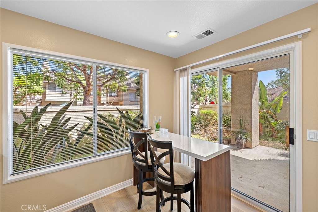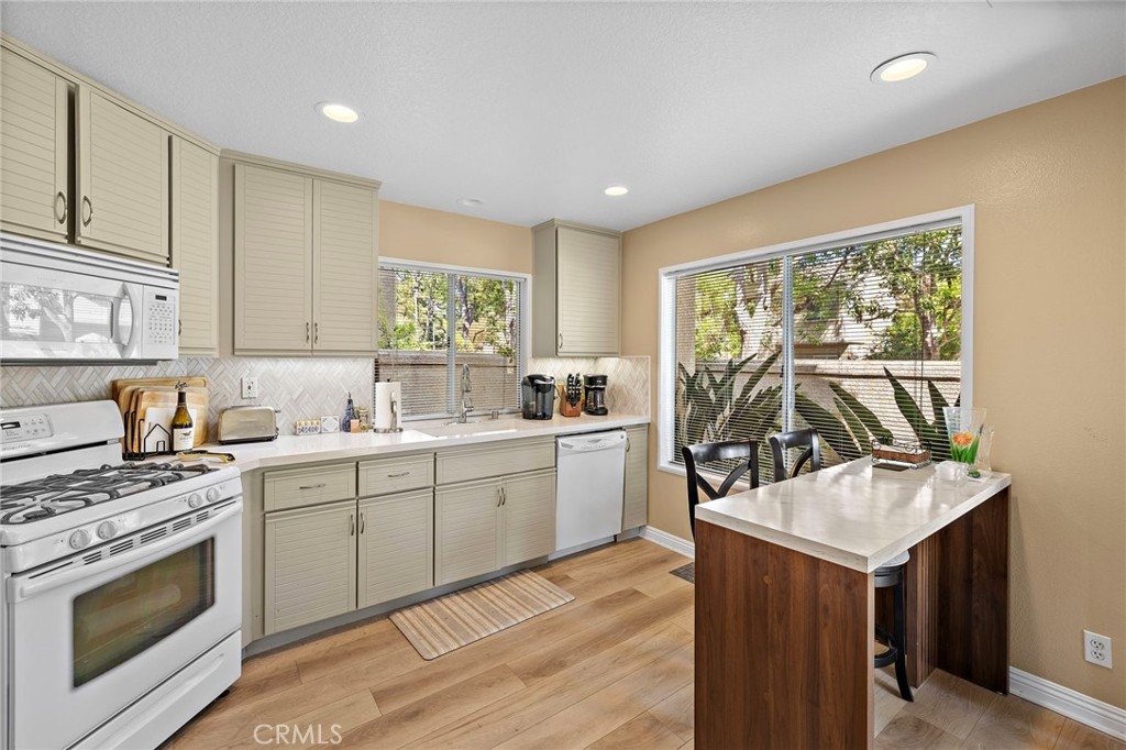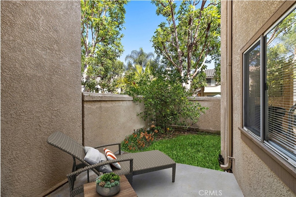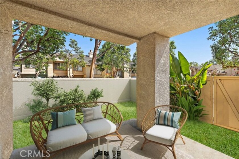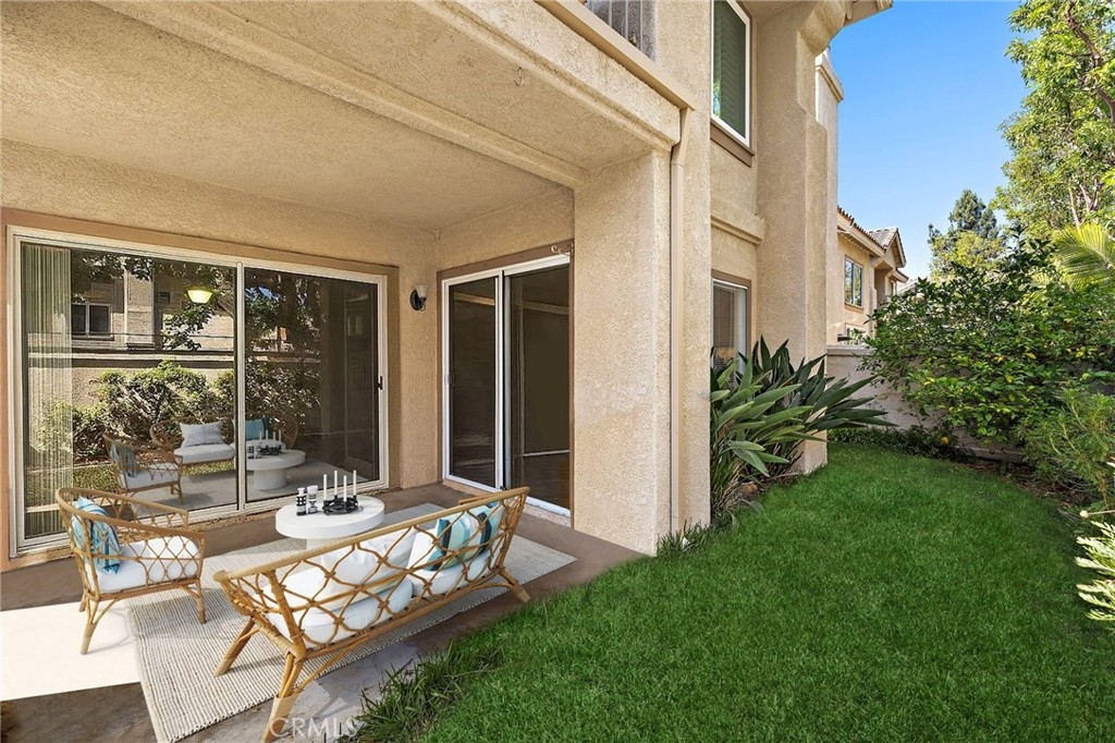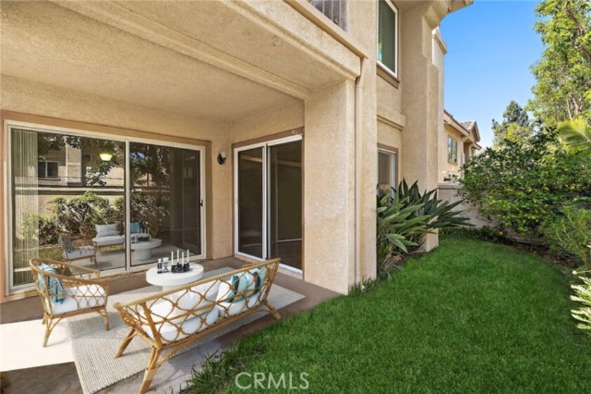 LOWER LEVEL | EASY ACCESS | FENCED-IN YARD | Welcome to 1 Encantado Canyon, a beautifully updated single-story end unit located in the sought-after Belterraza community of Rancho Santa Margarita. This light-filled 1,230 sq ft home features vaulted ceilings, an open-concept layout, an inviting fireplace, and stylish wood-like flooring throughout the main living areas. A spacious wraparound patio offers the perfect space for both relaxing and entertaining. The kitchen is equipped with Corian countertops, a modern tile backsplash, and direct patio access, while the primary suite includes cozy carpet, dual closets, a spa-inspired bathroom, and private access to a serene patio with a mature lemon tree. A second bedroom and full bath provide flexibility for guests or a home office. Additional highlights include fresh interior paint, two single-car garages (one with direct entry and laundry), low HOA fees, and access to SAMLARC amenities such as pools, parks, and a private beach club — making this home a perfect blend of comfort, convenience, and prime location. Rancho Santa Margarita has been voted the “Safest City” in California multiple times, and in 2025!