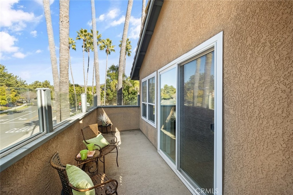 Welcome to 1 Mira Mesa, nestled in the sought-after community of Sausalito. This splendid upper-end unit features 2 bedrooms and 2 baths. Upon entering, you'll be greeted by an abundance of natural light, soaring ceilings, and an inviting open floor plan. The upgraded Pergo flooring adds a touch of elegance throughout. The spacious kitchen seamlessly connects to the living room, creating an ideal space for entertaining. Upgrades include modern kitchen cabinets and granite countertops. Both the living room and primary bedroom boast sliders that lead to a generous balcony, perfect for enjoying outdoor moments. A cozy fireplace graces the living room. The primary bedroom offers two large, mirrored wardrobe closets and dual sinks in the primary bath. Additional highlights of this home include an interior laundry room with ample storage space, extra storage cabinets in the hallway, and a convenient 2-car garage. Located just around the corner is Altisma Park, offering a junior Olympic-size pool, wader pool, 2 soccer fields, 2 baseball fields, 1 lighted tennis court, 4 lighted pickleball courts, and more. Award-winning Melinda Heights Elementary School is conveniently situated across the street. Rancho Santa Margarita residents enjoy the plethora of amenities in Samlark, including 12 parks, playgrounds, sports courts, multiple hiking and biking trails, and exclusive access to the Beach Club and much more. With easy access to the 241 Foothill Transportation Corridor, this beautiful home invites you to explore a lifestyle of comfort and convenience. Don't miss the opportunity to make it yours!