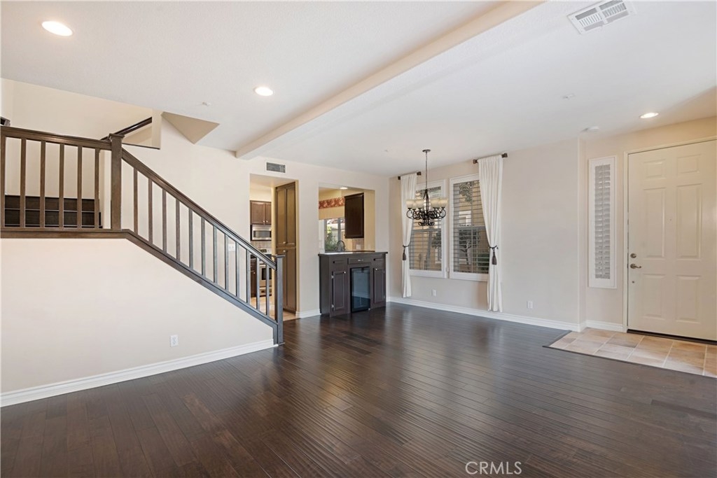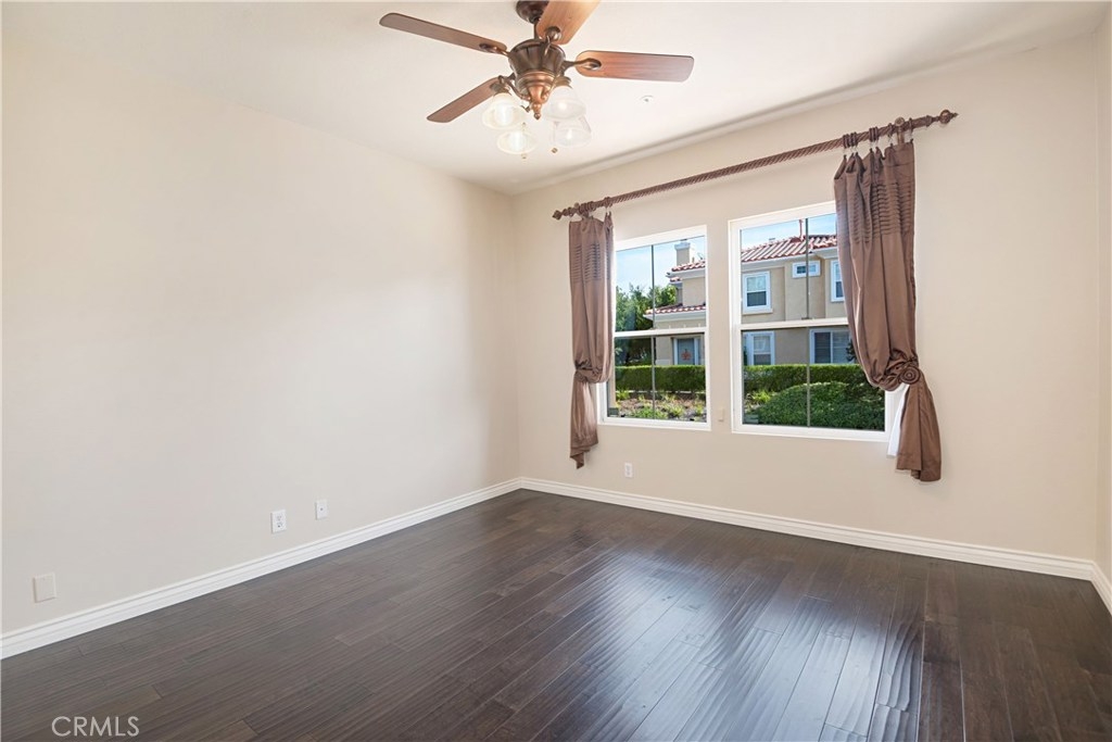 Gorgeous END UNIT townhouse with 4 bedrooms in Popular Terracina neighborhood. Former model home has a remodeled kitchen with granite counter tops, stainless steel appliances, gas stove, and refrigerator. Rich wood flooring throughout main floor w/ designer details throughout including wood mantel, 4 inch baseboards, built-ins, drapes, new fixtures and plantation shutters. Upstairs master suite is generously sized with a ceiling fan and a large ensuite bathroom and walk in closet. 3 additional bedrooms upstairs (one is being used as an office with built-ins). Wainscoting walls and ceiling fans in the guest bedroom. Inside laundry-room downstairs and a nice sized 2 car garage with custom organizers and built- ins for storage. Large enclosed patio in the rear of this home. This is an upscale neighborhood with an amazing walk to everything location..close to shopping centers, movies, restaurants and more! This home makes a great investment too! Enjoy the community amenities with a sparkling pool, spa, RSM beach club, lake, tennis, summer concerts and beach club to enjoy.