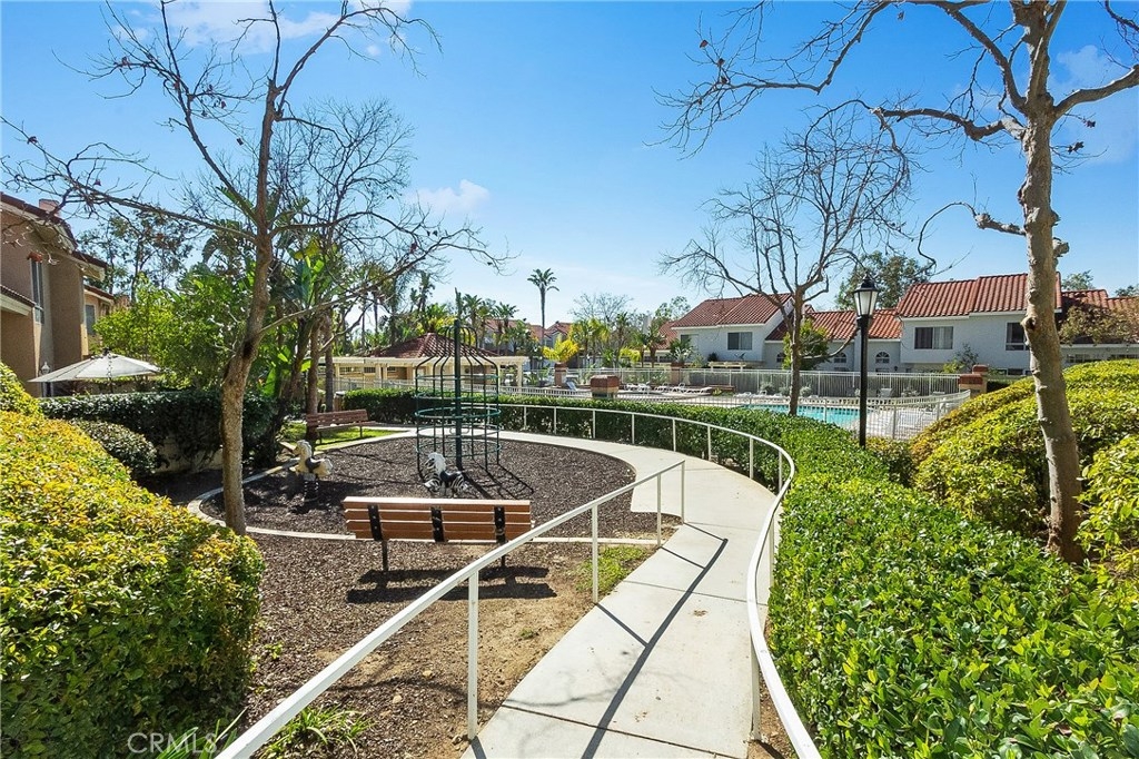 Light and bright end-unit townhome located in the Mission Greens community of Rancho Santa Margarita. Warm laminate floors and large, light-catching windows throughout complement the open floorplan. Enter the double doors to the inviting living room featuring soaring ceilings and a cozy brick fireplace. The living room seamlessly flows to the dining area with decorative wainscoting and sliding doors to the backyard. The kitchen is well-appointed with fresh white cabinets, granite counters and a breakfast bar. A powder room completes the downstairs. Upstairs, the master bedroom boasts vaulted ceilings and an en-suite master bathroom with dual vanities. Down the hall, two secondary bedrooms are generously sized and share the remodeled hall bathroom with a pedestal sink and a luxurious walk-in shower. Additional features include a newer air conditioning and heating unit, new toilets and a convenient two-car attached garage. Relax in the spacious and private back patio and the nearby community pool, spa and playground. Enjoy year-round SAMLARC hosted community events, use of the community parks & pools and the Santa Margarita Lake Beach Club. Nearby shopping & dining options, hiking & biking trails, the 241 toll road and award-winning schools.