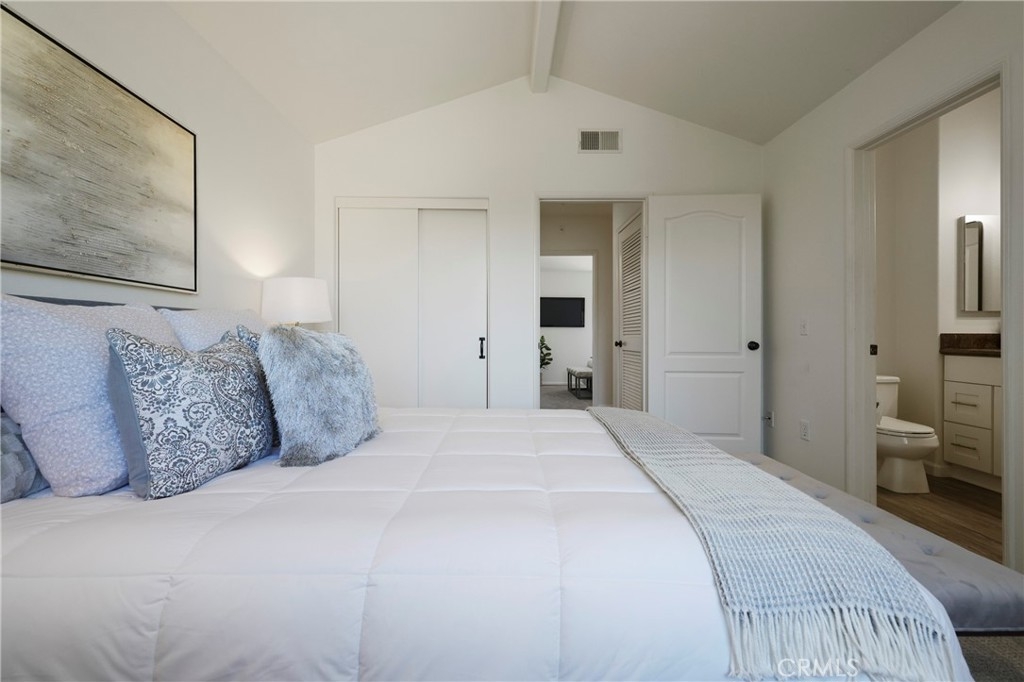 PROPERTY HAS TRIPLE PANE WINDOWS AND DOORS TO NEGATE STREET NOISE. Stunning mountain and water views from your living room in this 2 bed 2 bath condo located steps away from Rancho Santa Margarita lake. This 2-story home was updated with paint, new carpet, light fixtures and more in September of 2022. Previous updates include appliances, granite counters, sink, faucet and newer AC unit. The washer and dryer are conveniently located upstairs in-between the bedrooms. The unit also comes with an extra long 1 car garage for parking and additional storage. The Montana Del Lago community has a number of amenities including a pool, spa, barbecue, outdoor cooking area, picnic area, and playground. The Beach Club located adjacent to the community offers a swimming lagoon, bistro, fiesta room, covered patio, surrey bike rentals, picnic tables with umbrellas, 17 barbecue grills, 2 covered lounge areas, 2 sand volleyball courts and watercraft rentals. It is a quick walk to the grocery store, coffee, and local favorites like Carmelita’s and The Blind Pig.