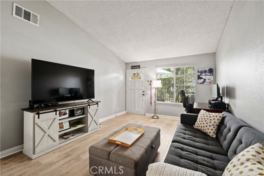 An enviable lifestyle awaits those lucky enough to call this picture-perfect Rancho Santa Margarita condo their home! You’ll live within the prestigious Mission Courts II community offering a host of amenities and a life of leisure. With enticing curb appeal, the neutral-toned exterior enhances immaculate landscaping. A cheerful sitting area on the balcony greets you as you enter to discover a delightfully modern interior. Stunning clean lines, crisp gray tones, and gleaming wide-plank floors are on display throughout. For those who love to entertain, the open floor plan showcases a living room, dining area with ceiling fan, and kitchen that flow seamlessly together. Your beautifully renovated kitchen presents stainless steel appliances, ample cabinetry, and quartz countertops extending to a peninsula. Two bedrooms afford generous space, restful comfort, and plentiful sunlight through expansive windows. The residence also features 2 baths, a new A/C unit, and fantastic community perks including a shimmering swimming pool, Jacuzzi, and a playground. What's more, you'll conveniently be near shops, parks, restaurants, schools and right across the street from the awesome Beach Club! Come take a tour of this remarkable home before someone else does!