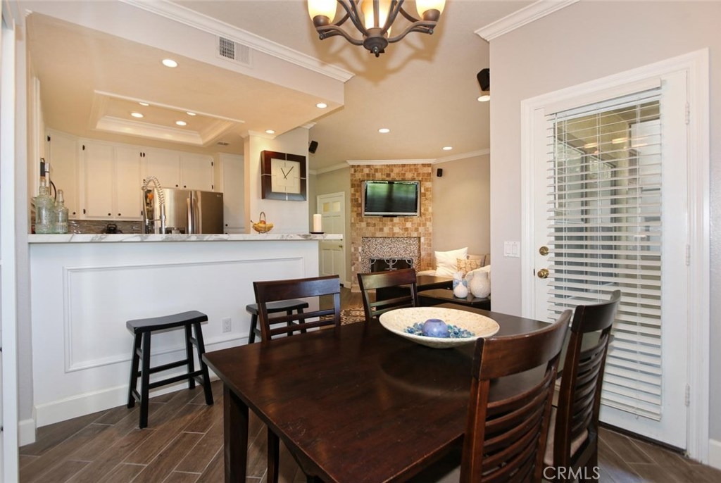 The beautiful community of Los Portillos feels close to nature with a modern flair. This is a fully remodeled condo from bedrooms to kitchen! A newly available 2 bedroom 2 bath with attached garage has a sophisticated feel with crown molding throughout the entire unit. The modern kitchen and living room share an open floor plan. The kitchen includes upgraded countertops, recessed lighting, tile floors, and all appliances. Enjoy this living room complete with custom designed fireplace and a wall mounted integrated sound system. The bedrooms are spacious but cozy with ample storage and carpet. Enjoy the dual sinks and closets in the master bath. The elegant master bathtub is fit for royalty with modern tile, built in shower seat, and a large, relaxing bath tub. The master bedroom has it's own patio with sliding glass door. Dual patios give plenty of opportunity to enjoy nature from your home! There is a convenient stackable washer and dryer located inside the unit. Additionally, there is ample storage space with bonus storage in the attached garage. The assigned covered carport and attached garage gives this condo two designated parking spaces. The community features new piping in entire community, an exclusive pool area with hot tub. There is direct access to O'neil regional park trail from the community. This condo also allows use of the RSM beach club, community pools and parks in the city that was named one of the safest cities in California.