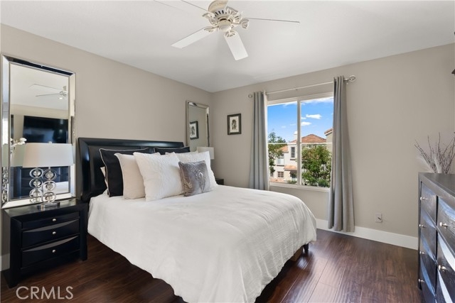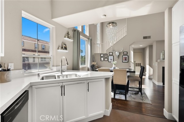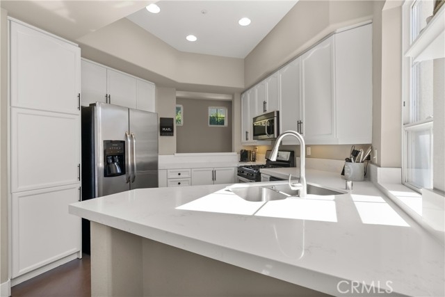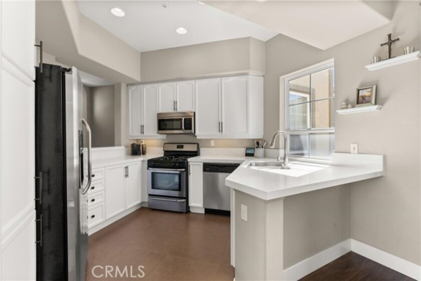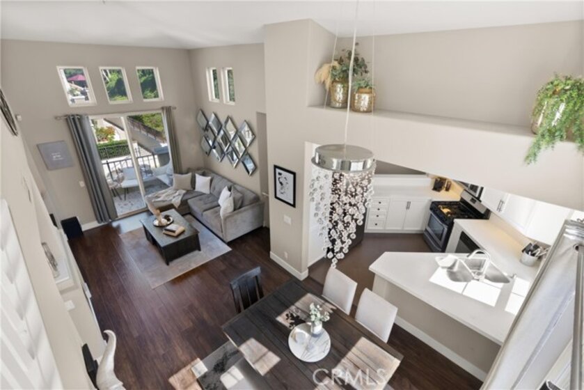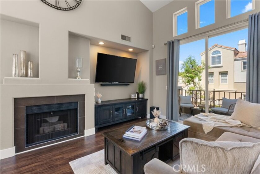 This is the home you have been waiting for! This truly exceptional property is a stunning, remodeled 2-bedroom, 2-bathroom home in the highly desirable Corte Melina community, located in the heart of Rancho Santa Margarita. This tri-level home features an open floor plan, spacious vaulted ceilings, and an abundance of windows that fill the home with natural light. It has undergone an extensive and meticulous renovation, with attention to every detail, making it truly spectacular. As you step inside, you'll be greeted by a beautiful entry that leads to the spacious main-level living area, featuring a fireplace and warm wood floors. Sliding doors open to a tranquil and generous patio, perfect for unwinding or relaxing with a book. The dining room, adorned with a beautiful designer chandelier, is ideal for entertaining and family gatherings. The remodeled chef's kitchen is a culinary dream, boasting gorgeous quartz countertops, a breakfast bar, under-mount lighting, stainless steel appliances, and stunning tile floors. The generously sized main-level bedroom includes a large closet and direct balcony access. The main-level bathroom has been renovated with a new tub, vanity, fixtures, lighting, cabinets, and a quartz countertop, adding a touch of modern elegance. The private primary suite, a true retreat, is conveniently located on the top level, complete with a ceiling fan and dual mirrored closets. Its spa-like In-suite bathroom features twin sinks, a soaking bathtub with custom tile work, quartz countertops, and designer lighting. A lower-level laundry area with built-in storage is conveniently located near a one-of-a-kind bonus area that is sure to impress. The attached single-car garage offers additional storage space and an EV charger plug. Residents of this community enjoy resort-style amenities, including a swimming pool, spa and fitness center. The property's convenient location provides easy access to award-winning schools, shops, dining, and nearby parks, hiking/biking trails, RSM Lake, Beach Club Lagoon, and various entertainment options. This home offers an exceptional lifestyle of comfort, convenience, and elegance. The new homeowner will truly appreciate this centrally located, meticulously cared-for, highly upgraded, and move-in ready home. I invite you to schedule your private showing today.