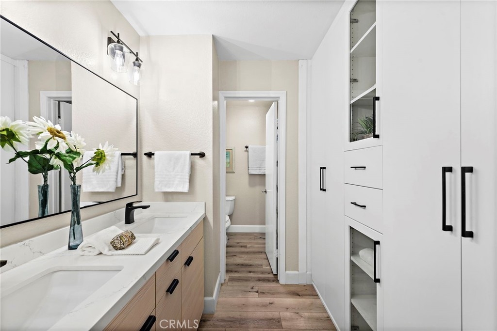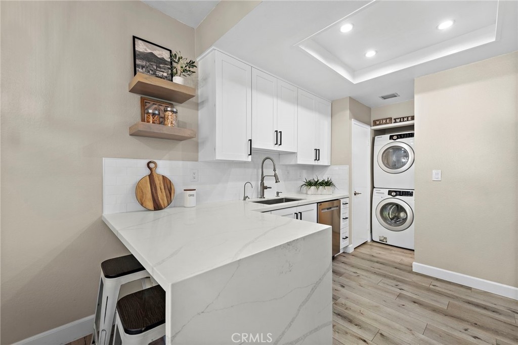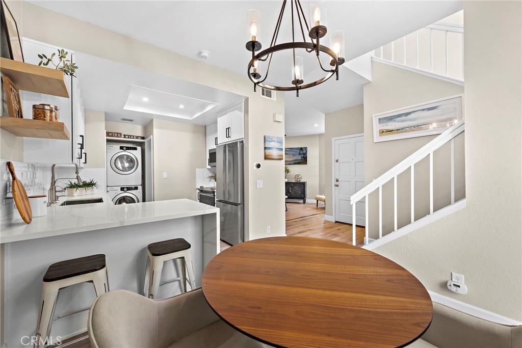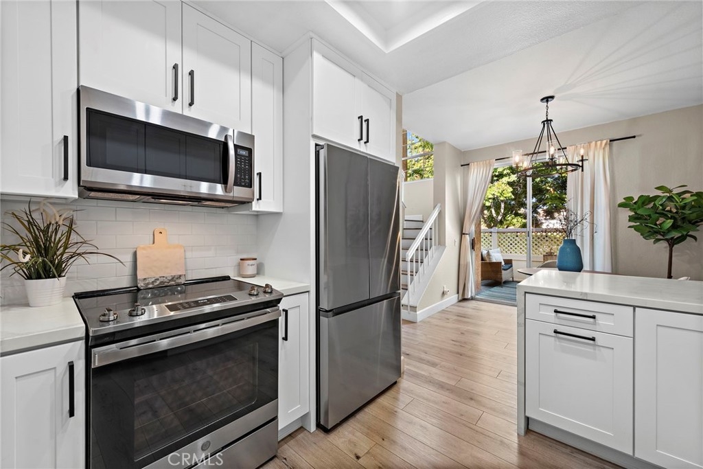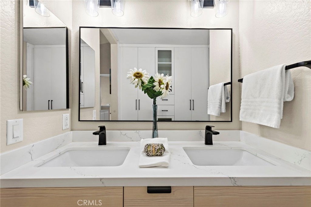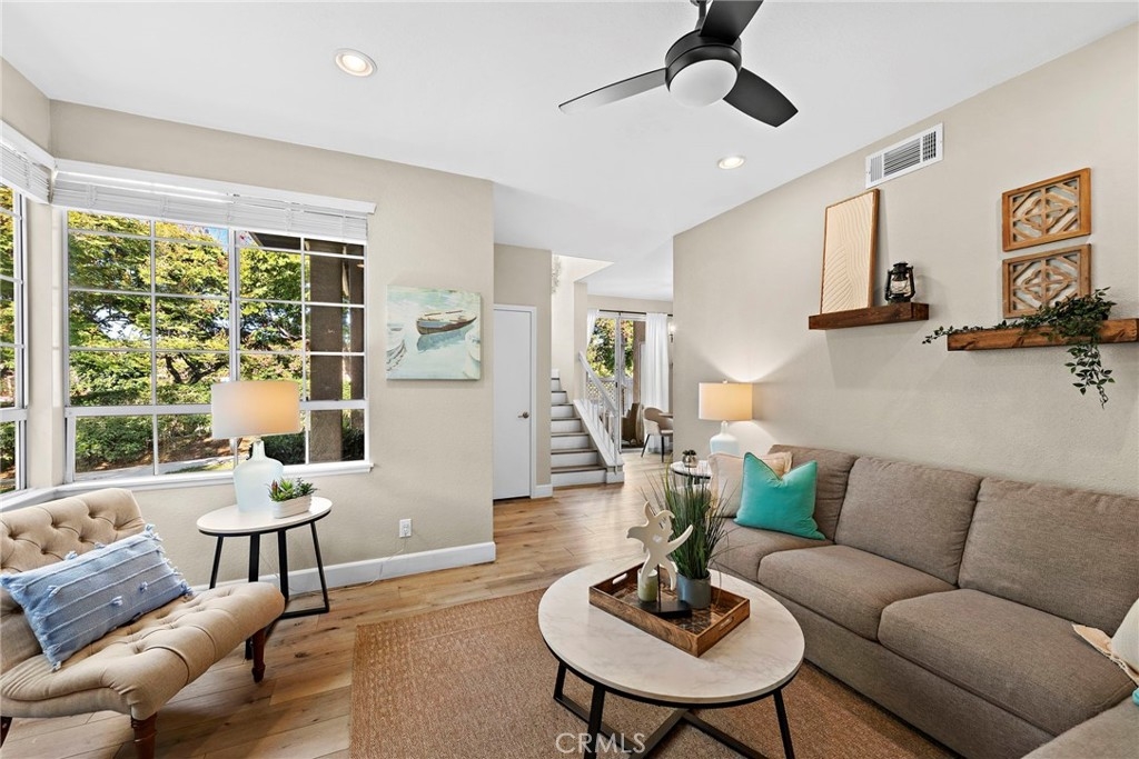 This highly desirable 2-bedroom, 2.5-bath end-unit townhouse-style condo in the Mission Court community offers the perfect blend of comfort and convenience. Step into the living room on the ground floor, ideal for relaxing or entertaining. Adjacent to the dining area, you'll find a private patio, perfect for outdoor dining or unwinding. This beautifully remodeled kitchen, with all new appliances, opens seamlessly to the dining space, creating a welcoming flow. Upstairs, enjoy two expansive master suites, each with new closets by California Closest and renovated private baths. Inside laundry adds convenience. This home also has a brand new AC unit! The community features a sparkling pool, soothing spa, lush greenbelts, and a tot lot. Plus, enjoy access to the master community's exclusive amenities, including an additional pool, beach club, and more. A prime location and a must-see!
