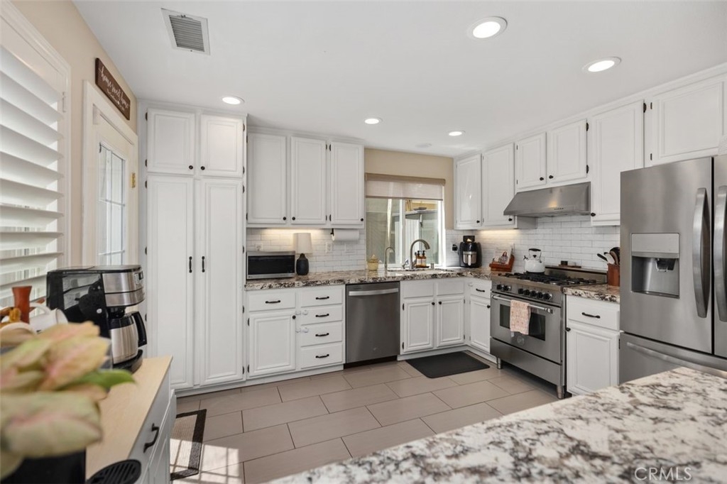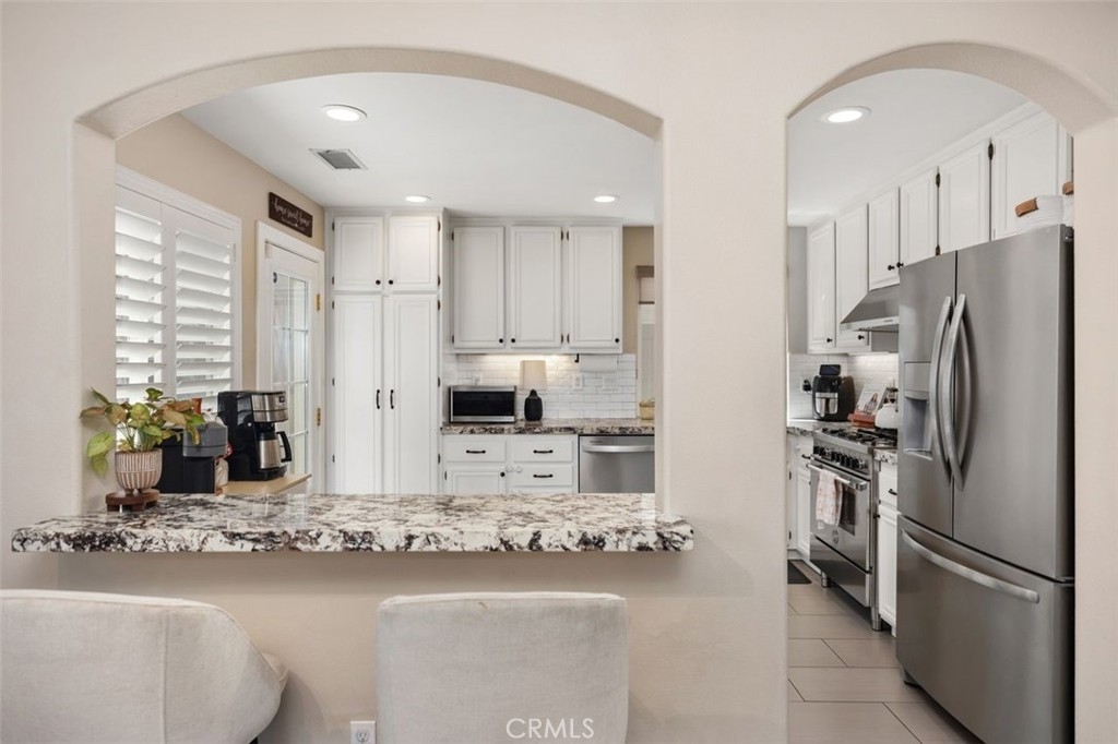 Welcome to the highly-desirable Magnolia Community of Rancho Santa Margarita! We proudly offer approximately 1,438 square feet of gorgeous living space with three bedrooms and two and a half bathrooms. The upgraded kitchen features granite countertops and stainless steel appliances. High-end tile flooring and a custom fireplace hearth add sophistication throughout the home. Plantation shutters and paneled walls create a refined ambiance. The bathrooms have also been upgraded. The home has a perfect curb appeal and the back yard is good sized for BBQ's and entertaining. A two-car garage provides direct entry. Upgraded amenities include: newer AC unit and FCU, newer water heater 2022, new dishwasher, whole house fan, reverse osmosis, water softener and repiped pex piping! The community features a junior Olympic pool, spa, parks, BBQ areas, a splash pad, tennis and sports courts and more! No Mello Roos! Close to shopping, dining and award winning schools! Schedule your tour today!