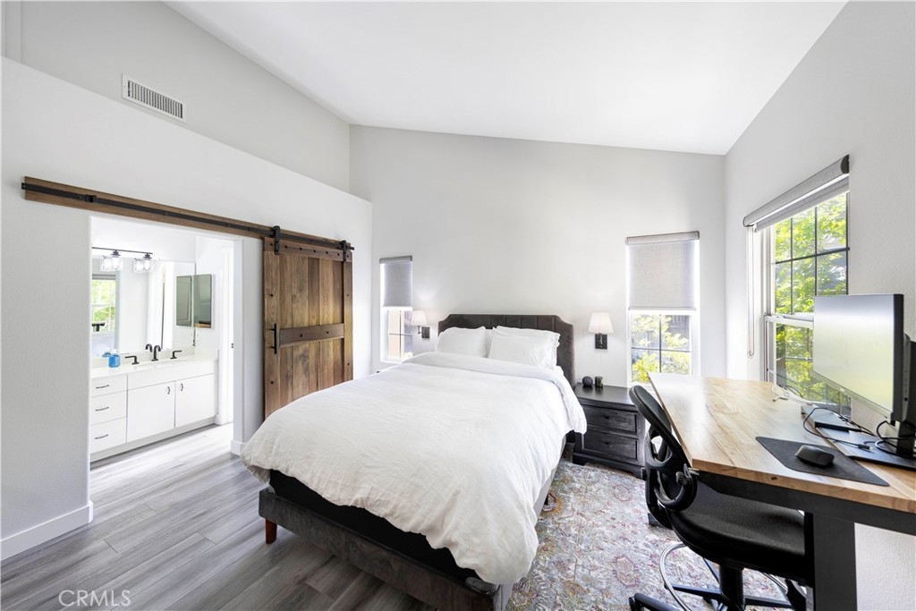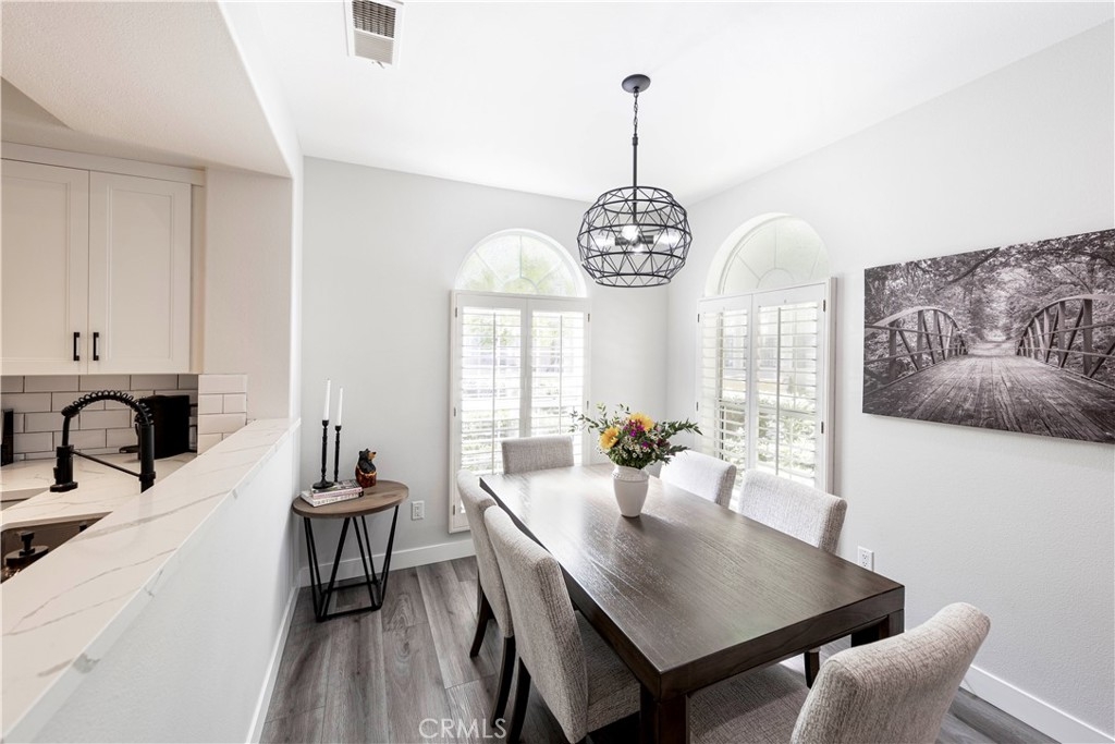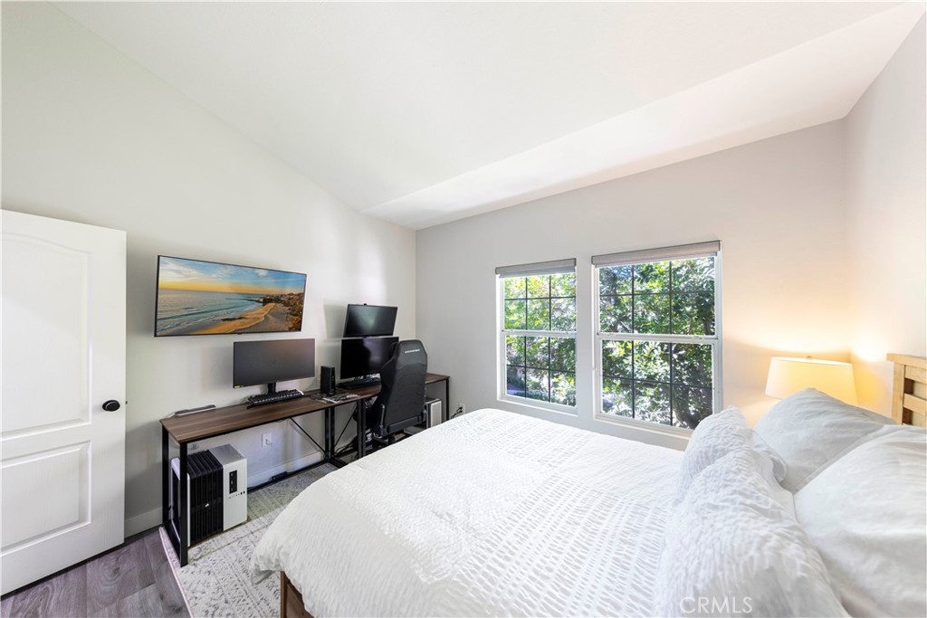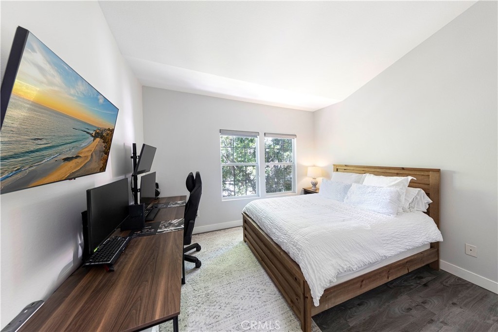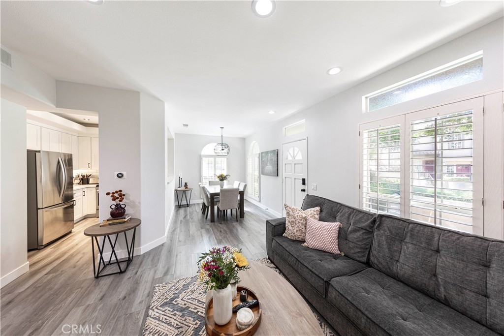 Beautifully upgraded 2-bedroom, 2.5-bath townhome in the highly sought-after Montana Del Lago community. This home features two primary bedrooms with vaulted ceilings, including one with an upgraded shower and a stylish barn door. The remodeled kitchen includes new cabinets, quartz countertops, a stylish backsplash, a barn sink, and newer stainless steel appliances. The living room is highlighted by a cozy fireplace, perfect for unwinding. Other upgrades include luxury vinyl flooring with upgraded baseboards, recessed lighting, plantation shutters, window blinds, new faucets, a screened front door, a new AC condenser, and new toilets. Enjoy the private patio overlooking the courtyard, an attached 2-car garage, and the privacy of no neighbors above or below. Conveniently located near the Rancho Santa Margarita lake, beach club, community pool, spa, restaurants, and shopping.