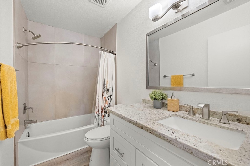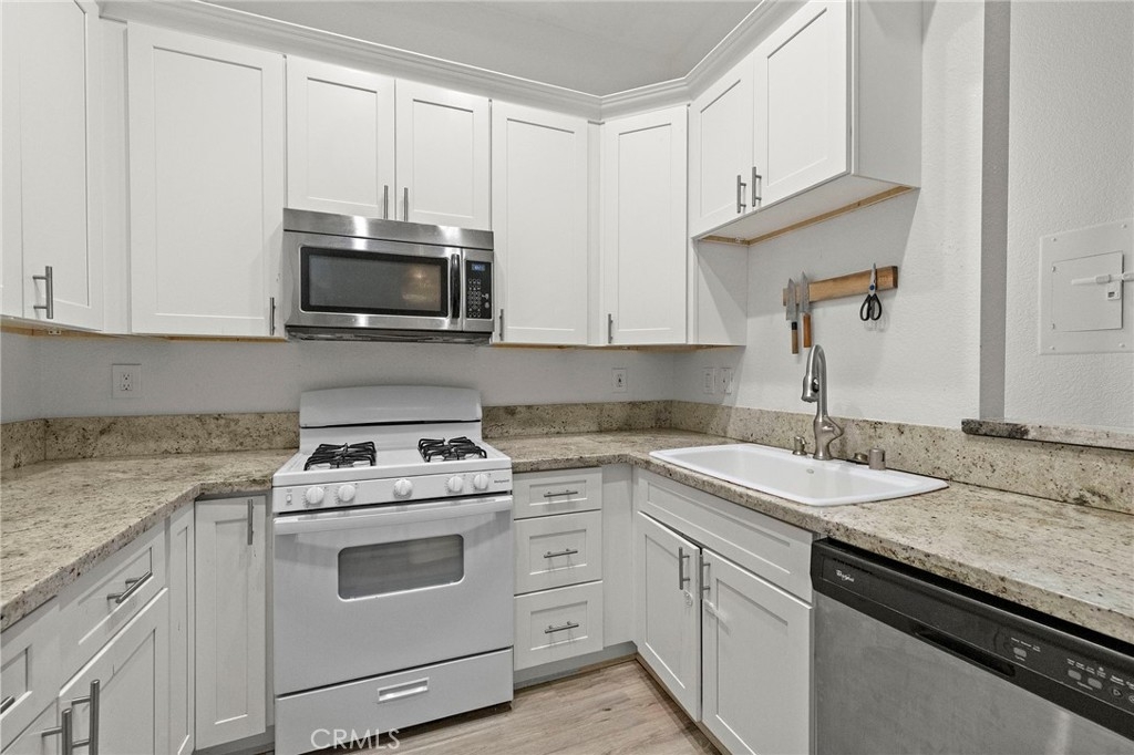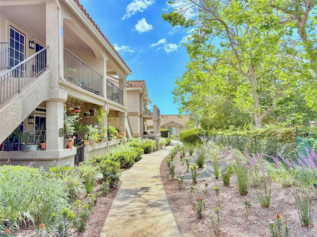 This wonderful starter home in beautiful Rancho Santa Margarita is located on the upper level with a spacious balcony perfect for enjoying the peaceful and serene community with views of trees & beautiful landscaping and expansive park-like community grounds, steps from your door. As you enter the home from the balcony the family room offers high ceilings a fireplace & windows with plenty of light.  The kitchen displays light & bright granite counter tops & white Shaker cabinets with plenty of space for a cozy dining table for the family.  The master bedroom with ensuite bathroom and the secondary bedroom with renovated bathroom provides a comfortable living space.  For added convenience you have a downstairs attached garage with direct access to the home. 2nd parking spot available with permit. Enjoy the many amenities of the community with a swimming pool, tennis courts, basketball court, Pickle ball courts and two tot lots. Located by convenient neighborhood shopping,  and Recreation Centers. RSM Lake is just a few blocks away featuring Boating. Also enjoy Parks, Hiking and Biking Trails. Make an appointment to view this beautiful home now!!