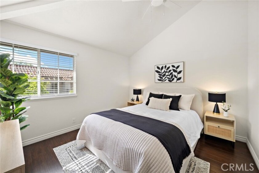 Welcome to this beautifully remodeled luxury condo in a superb end-unit location of the Mission Courts II community. Stroll into this turnkey home with incredible ambiance, vaulted ceilings upstairs and downstairs, custom and recessed lighting throughout. The heart of the home features a Chef’s dream kitchen showcasing high-end JENN-AIR appliances, convection/microwave oven, induction cooktop, granite counters, and solid cherry wood cabinets, and the inside of the condo has brand new paint and lighting, custom blinds, Ilva premium Argentinian porcelain tile downstairs and engineered wood flooring upstairs. The condo also includes a newer Heating and Air conditioning system and a custom black glass remote fireplace with lighting in the living room. When you wander upstairs you will be led to two very spacious bedrooms, both with en-suite bathrooms, large closet spaces and scenic community views. There is no one above or below and the end unit location also offers much privacy and serenity. Also included is a convenient inside laundry unit with washer and dryer included and a newer dual pane sliding door that leads to a large private patio. The property includes one garage parking space and storage, and there is plenty of other open parking outside for owners and guests. You will truly appreciate this spectacular Rancho Santa Margarita community, close to top rated schools, restaurants, shopping, and a short walk to the Rancho Santa Margarita Lake & Beach Club (access and membership included). There are also nearby tennis courts and community pools, including a separate pool, spa and children’s play area within Mission Courts II. The complex is FHA and VA approved. This is a beautiful home that is a MUST SEE!