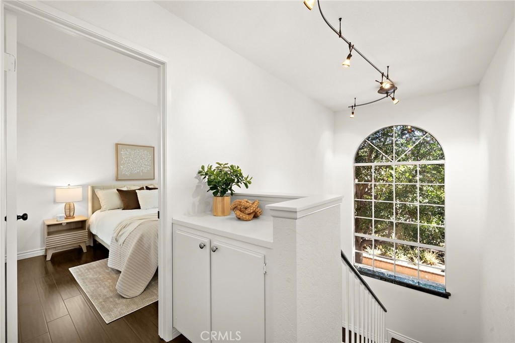 Welcome to this beautifully remodeled luxury condo in a superb end-unit location of the Mission Courts II community. Stroll into this turnkey home with incredible ambiance, vaulted ceilings upstairs and downstairs, custom and recessed lighting throughout. The heart of the home features a Chef’s dream kitchen showcasing high-end JENN-AIR appliances, convection/microwave oven, induction cooktop, granite counters, and solid cherry wood cabinets, and the inside of the condo has brand new paint and lighting, custom blinds, Ilva premium Argentinian porcelain tile downstairs and engineered wood flooring upstairs. The condo also includes a newer Heating and Air conditioning system and a custom black glass remote fireplace with lighting in the living room. When you wander upstairs you will be led to two very spacious bedrooms, both with en-suite bathrooms, large closet spaces and scenic community views. There is no one above or below and the end unit location also offers much privacy and serenity. Also included is a convenient inside laundry unit with washer and dryer included and a newer dual pane sliding door that leads to a large private patio. The property includes one garage parking space and storage, and there is plenty of other open parking outside for owners and guests. You will truly appreciate this spectacular Rancho Santa Margarita community, close to top rated schools, restaurants, shopping, and a short walk to the Rancho Santa Margarita Lake & Beach Club (access and membership included). There are also nearby tennis courts and community pools, including a separate pool, spa and children’s play area within Mission Courts II. This is a beautiful home that is a MUST SEE!