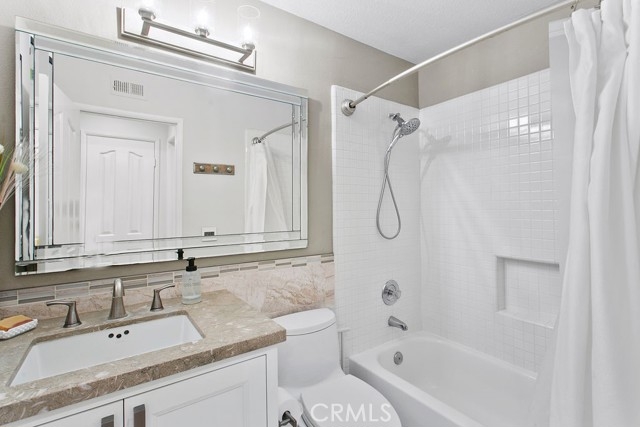 Private corner ground floor unit with an incredible outdoor living space, overlooking an open greenbelt. 2 bedroom and 2 bath unit has an open floor plan with a lot of natural light. French oak engineered wood flooring and vinyl windows throughout. Kitchen features Quartzite countertops with a custom floating island showcasing modern kitchen cabinetry. Open living room with a marble fireplace and office nook, overlooking the dining area. Both bathrooms have been beautifully updated. The master bath is appointed with floating Cerused marble vanity, marble floors, oval soaking bathtub, along with designer lighting and cabinetry. Nestled next to the Tijeras Creek Golf Course, this home has lovely indoor/outdoor spaces. The oversized covered patio is perfect for outdoor entertaining and gardening. The low maintenance garden expands the length of the unit with mature roses, flowering shrubs and cypress trees. There is a screened-in patio area off of the master bedroom. Additional features include: attached laundry area, plenty of storage and 2 garage spaces - one car garage is attached with direct access and a one car detached garage with drop down ladder to attic area for extra storage. Close to many outdoor activities: bike riding and hiking in Trabuco Canyon and Whiting Ranch trails, approximately 30 minutes to Laguna Beach and Dana Point. Additional amenities include membership to SAMLARC, a resort-style membership that offers 13 community parks, 4 pools, a beach club lounge and lagoon. Close to transportation, shopping and restaurants.