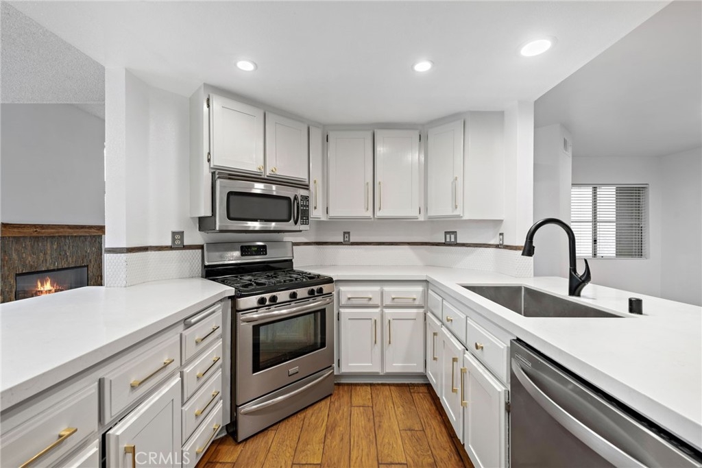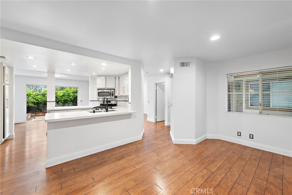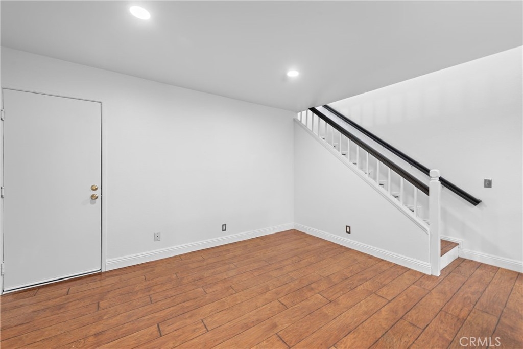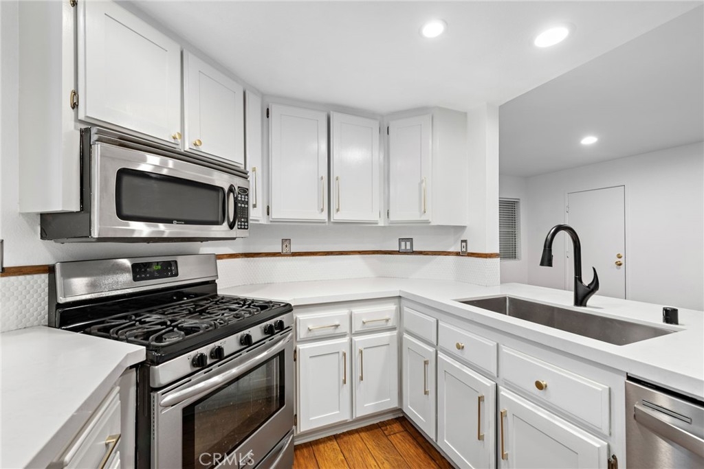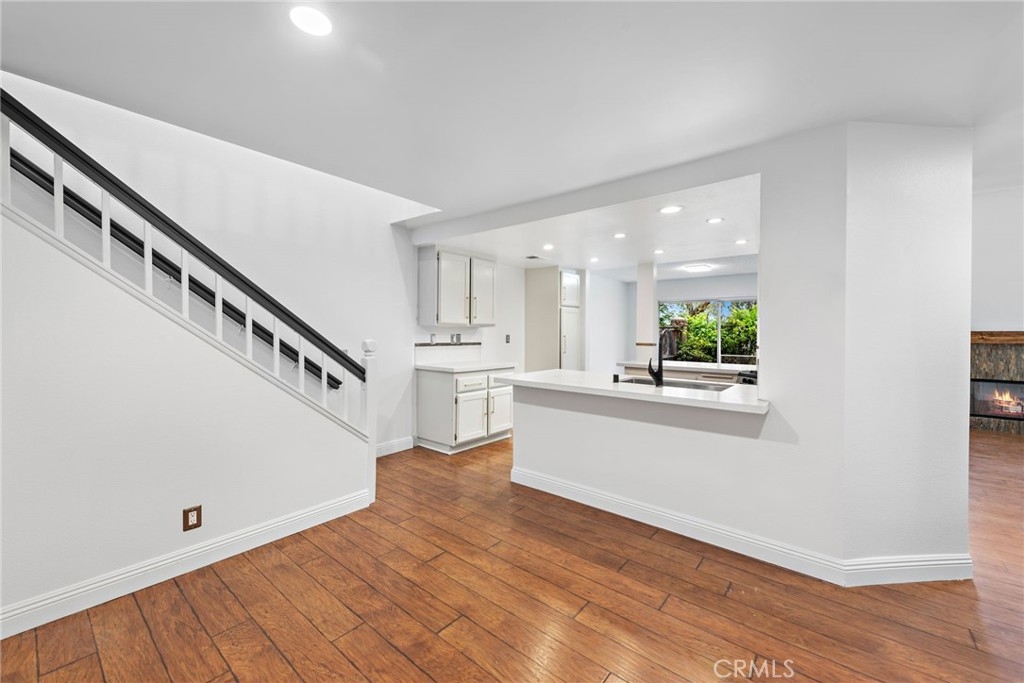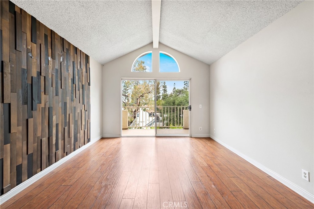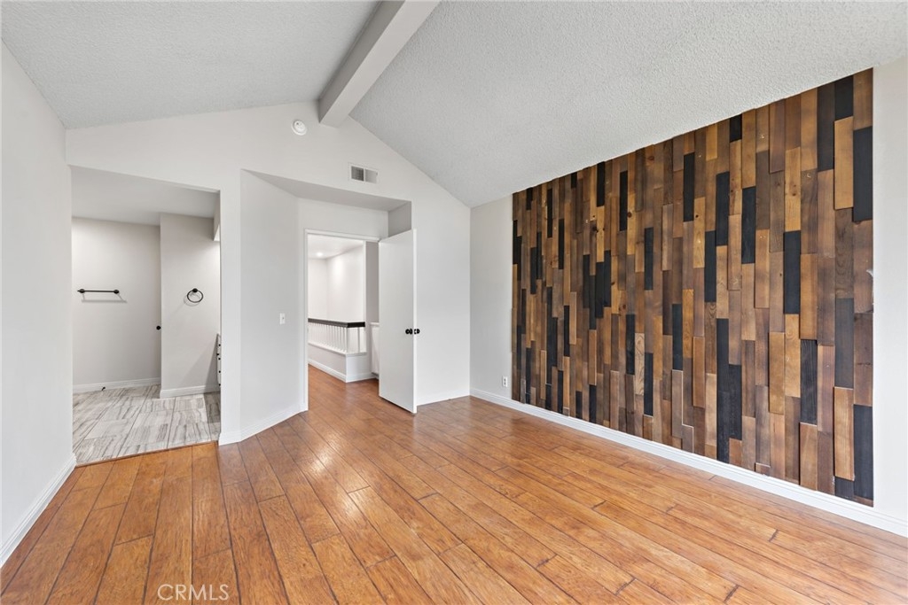 Nestled in the desirable Vista La Cuesta neighborhood, this fantastic property is walking distance to the scenic Rancho Santa Margarita Lake and Trabuco Mesa Park. As you enter, you will immediately appreciate the sense of space. Cathedral ceilings in the living room add light and style. A cozy fireplace with stack stone tile and custom wood mantle are the focal point of this room. Kitchen features quartz countertops, recently painted cabinets, modern hardware and stainless steel appliances. The kitchen is open to the bright dining room space with a slider out to your private patio. The family room or flex space off the kitchen provides versatility and is a major bonus of this floorplan. Beautiful wood floors throughout enhance the flow of this lovely home. The upstairs spacious primary suite features a wood accent wall and a sliding door out to your private patio. Enjoy hills views and a lovely breeze. The ensuite bath has a soaking tub, walk in shower, double sinks and an oversized walk-in closet. Two additional bedrooms and guest bath complete the upstairs floorplan. The private patio has room to entertain and enjoy the SoCal lifestyle while enjoying the hills and neighborhood views. There is plenty of parking between the two-car garage and the spots directly in front of the unit that can be used by residents. You will instantly feel like you are on vacation when you walk over to the Vista La Cuesta community pool or head to the lake and beach club. O’Neill Park is behind the complex so it’s easy to enjoy hiking and bike riding. All of this at a fantastic price – hurry, this one won’t last.