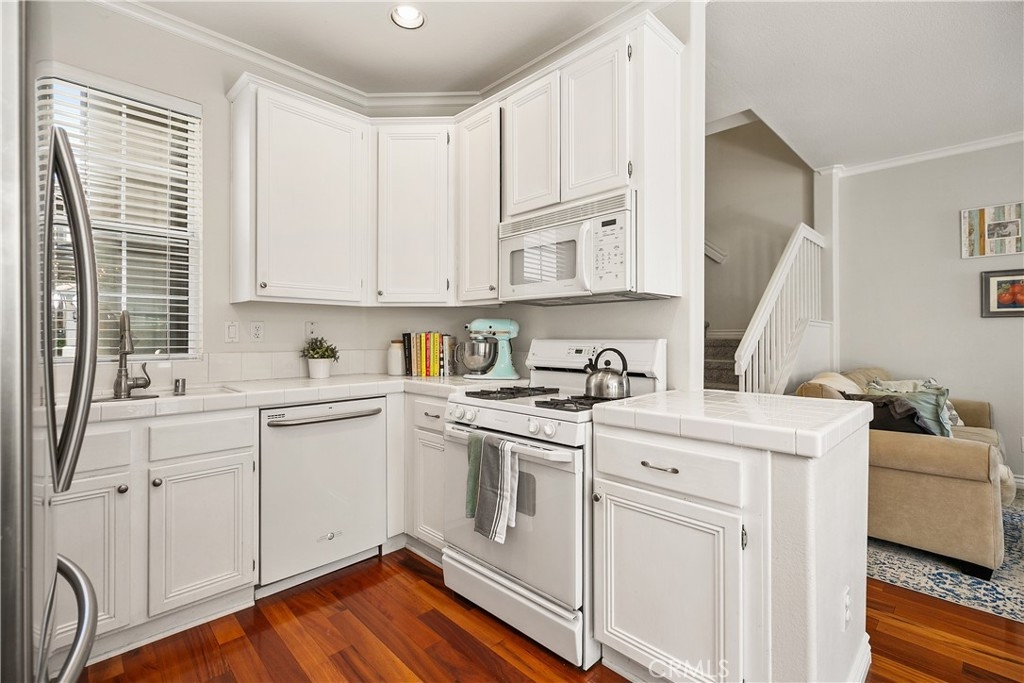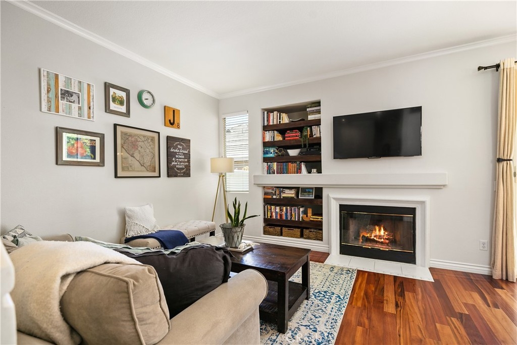 Tastefully appointed dual master suite townhome in the prestigious, gated, cobblestone community of SeaCountry, in Las Flores! There is no other townhome community with attached garages, like Seacountry! This home in particular has gorgeous hardwood floors that adorn the entire downstairs with a powder bathroom for guests! A light and bright space doesn't disappoint and includes a fireplace and chunky shelving! White kitchen and dining room is right off the patio making it ideal for entertaining or just relaxing! Other features include smart thermostat, newer garage door opener, Pex- repiped whole house, crown molding, stamped concrete patio, second floor washer and dryer, and more! The second floor master has attached dual sink bathroom, roman tub and a separate shower with new lighting and designer tiled flooring. Large walk in the closet too! The other master bedroom has an attached bath and has new lighting and designer tiled flooring. Icing on the cake is you have an attached two car garage! The Las Flores community amenities include pools, spa, events and sports courts/water play park, with Seacountry having a pool/spa and tot lot too! Perfect location near the 241 toll road and the 5 freeway, restaurants, golf, hiking trails and Blue Ribbon schools; Tesoro High School and Las Flores Elementary and Middle School and super close to SMHS. Low HOA! This one won't last!