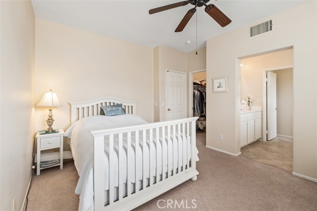 This beautiful townhome is located in the Terracina community in the heart of Rancho Santa Margarita on a premium lot next to the cul-de-sac and facing quiet street with huge private patio. This popular floor plan features two bedroom suites each with spacious bathrooms, ceiling fans and a walk-in closet in each. The Open floor plan has a Great Room with a gas fireplace, newer laminated flooring, plantation shutters, ceiling fan and it opens to the outdoor spacious patio. The guest bath is on the main floor by the coat closet. The laundry room with a washer and dryer opens to the two car garage with storage cabinets. The kitchen has free standing oven range, fridge, microwave and washing machine. The breakfast counter bar faces the dining area. Terracina unlike many other communities, has plenty of guest parking and a spacious community pool and spa that are well maintained, garage door, exterior walls and concrete patio has recently been updated. This community is located near shopping, restaurants, theaters, parks. You also have access to the SAMLARC amenities which includes The Beach Club Lagoon recreation room, 4 junior-Olympic swimming pools, spas, park and the beautiful RSM Lake, trail and swim lagoon.