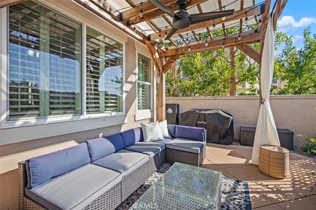 Tucked in one of the most peaceful spots in the gated community of Seacountry, this 4-bed, 2.5-bath home backs to the beautiful Tijeras Canyon—offering rare privacy with no homes behind. Inside this 1,700 sq. ft. home you will find an updated kitchen, plantation shutters throughout, an upstairs laundry room with sink, a built-in office, and great views from the primary bedroom. Step outside to your custom pergola with outdoor fan—perfect for quiet mornings or sunset entertaining. Recent updates include newer dual-pane windows (with transferrable lifetime warranty), a whole house fan, tons of custom garage storage, and a newer water heater. Full-size 2-car garage with private driveway. Close to Tijeras Creek Golf Course, La Paws Dog Park, award-winning schools, and miles of trails—this is a home that combines comfort, privacy, and convenience in one of Rancho Santa Margarita’s most desirable gated communities.