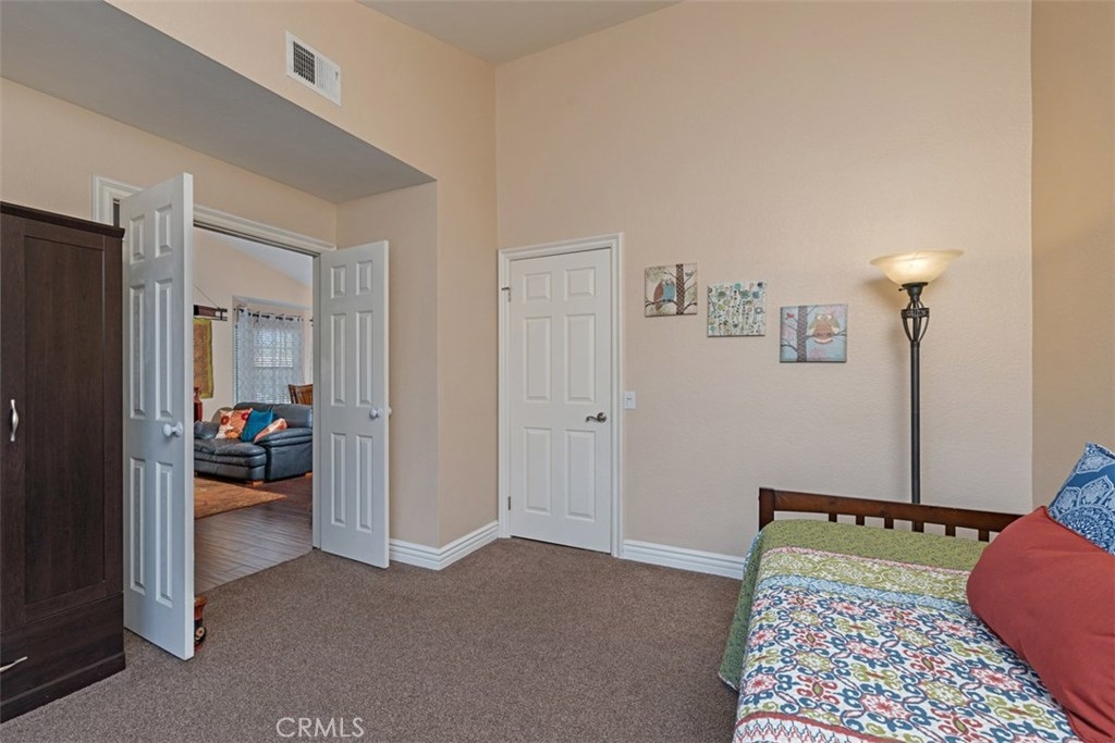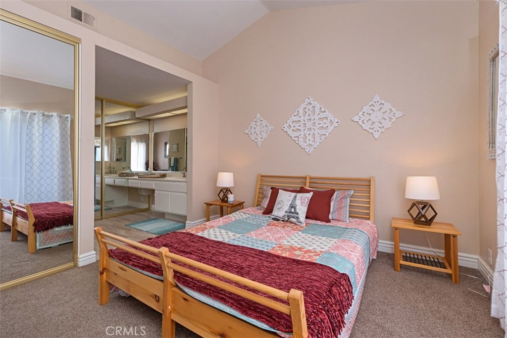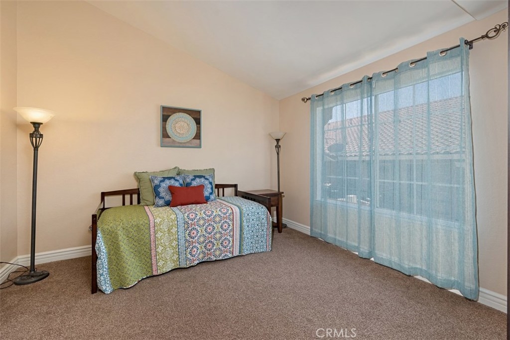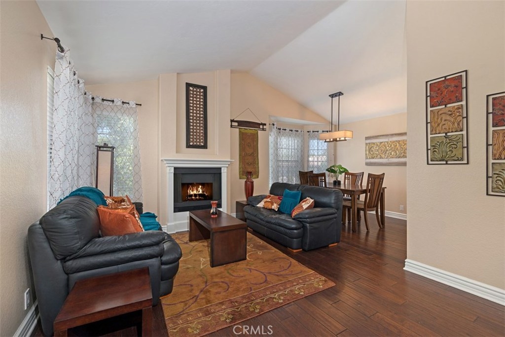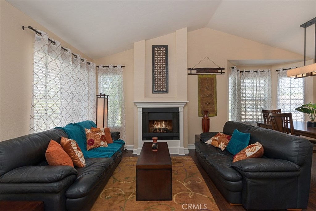 Turnkey 2 bedroom, 2 bath carriage unit with nobody above or below! Living room with cathedral ceilings, manufactured wood floors and warm fireplace! Kitchen includes quartz counters, new stainless sink, recessed lights and new tile. Formal dining with new light fixture. Dual tone paint and upgraded baseboards throughout. Large master bedroom with two closets, plus slider doors to private deck and storage closet. Master bath includes dual vanity, new tile flooring and oval tub. Middle bedroom has double doors leading to living room, plus single door access at hallway. Stackable washer/dryer hookups in middle bath closet. End unit with large second balcony overlooking perimeter walkway and greenbelt area, which has convenient steps that lead down to the neighborhood access to Cielo Vista Park, Cielo Vista Elementary and RSM Intermediate. Single car garage. Community includes pool/spa and tot lot. Plus right across the street from Santa Margarita Lake with all of its amenities!