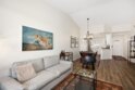 Experience breathtaking views in this completely remodeled 2-bedroom, 2-bathroom upper-level property overlooking the Tijeras Creek Golf Course. Enjoy serene vistas of the golf course, lake, fountain, and waterfall from the living room, patio, and primary bedroom. This home features luxurious upgrades, including elegant vinyl plank flooring throughout, tastefully remodeled bathrooms with marble tile shower and tub enclosures, white wood cabinetry, quartz-style vanity tops, and stylish black hardware. The primary and secondary bedrooms are equipped with built-in closet organizers and wood blinds for convenience and sophistication. Additional highlights include a stunning quartz-style marble fireplace, soaring volume ceilings, and a laundry closet with a stacked washer and dryer. For parking, the property offers both a private one-car garage and a designated carport. Residents also have access to exceptional community amenities, including two pools and a fitness center, offering a perfect blend of relaxation and recreation.