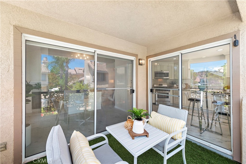BACK ON MARKET! Don't miss this one. It's the lowest priced per square foot condo in all of RSM. It's the largest unit! It's beautiful! Second story, single level, corner unit with two garages. This open and airy plan one is located in the desirable Belterraza neighborhood. This home features vaulted ceilings, two bedrooms, two full baths, a recently remodeled kitchen with granite counters and stainless steel appliances, balcony deck off of the kitchen and dining room, tile faced fireplace, wood laminate flooring, fireplace, custom paint, and custom lighting fixtures. The beautiful master suite has vaulted ceilings, dual mirrored closet doors and dual vanity in the master bath. There are two single car garages, one attached with direct access and one detached. Enjoy Belterraza's association pool and spa! Also, the Rancho Santa Margarita City Association amenities like the lake, lagoon, pools, parks, tennis courts and more! Note one garage is attached directly to unit, the other is just a few steps away. Don't miss this amazing opportunity to call this immaculate condo your "HOME".. What are you waiting for? You could be home for the holidays!