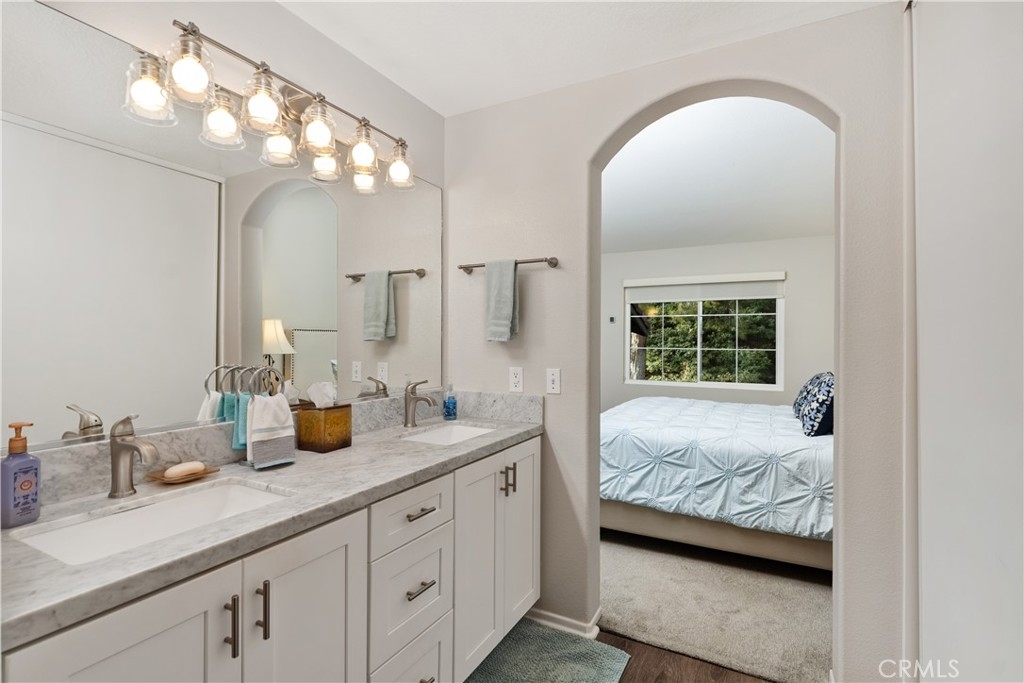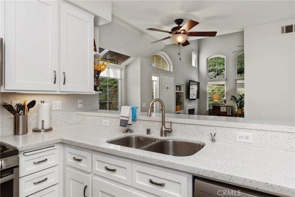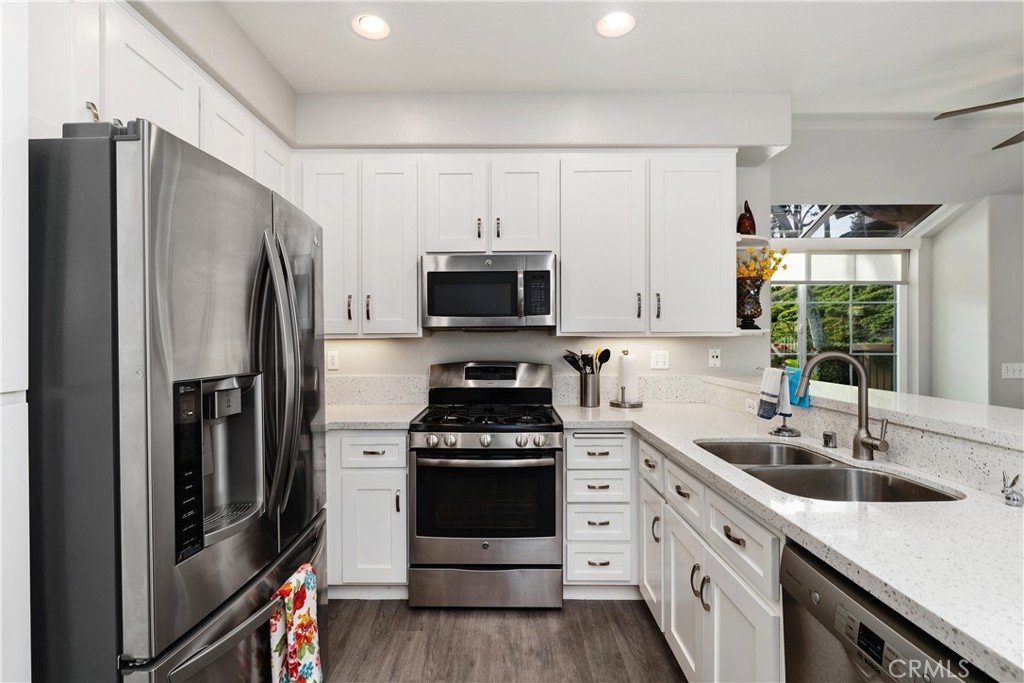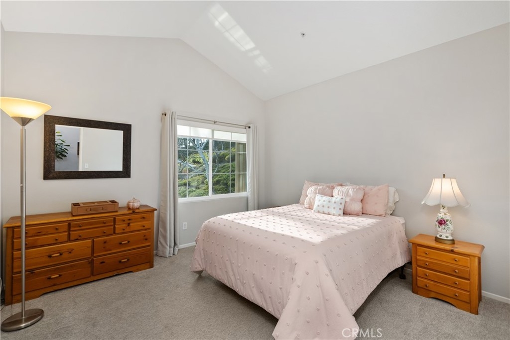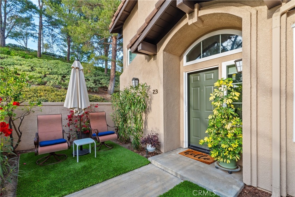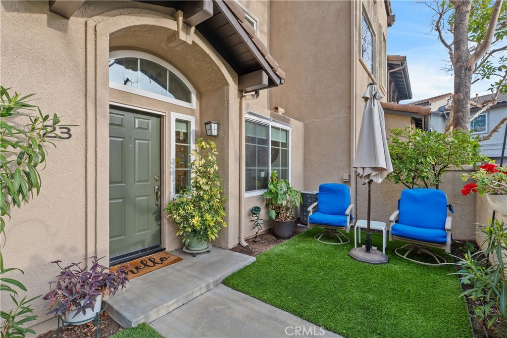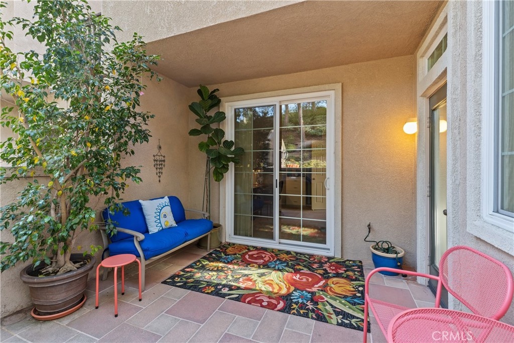 Welcome to this beautiful turnkey 3-bedroom, 3-bathroom townhome-style condo nestled in a serene community in Rancho Santa Margarita. This light-filled home boasts vaulted ceilings in the spacious family room, with large new windows, creating an open and airy ambiance. Step into the modern kitchen, where stainless steel appliances, quartz countertops, and cabinets with pullouts make cooking and entertaining a dream. The main floor offers a flexible bedroom or office space with a full bathroom, ideal for guests. Enjoy the indoor-outdoor lifestyle with two inviting patios, perfect for relaxing or entertaining. Upstairs, you'll find a spacious primary suite with 2 closets, a marble countertop vanity and bathroom, along with a third bedroom featuring a walk-in closet and private ensuite bathroom. Situated in a peaceful community with mature trees, this home offers both privacy and convenience, with easy access to shopping, dining, top-rated schools, and outdoor recreation. As a member of SAMLARC you will you will have access to the Beach Club, 4 jr olympic sized pools, Pickleball courts, Tennis, and Basketball courts. The community also includes its own Pool and Spa. Don't miss the chance to make this move-in-ready gem your own!