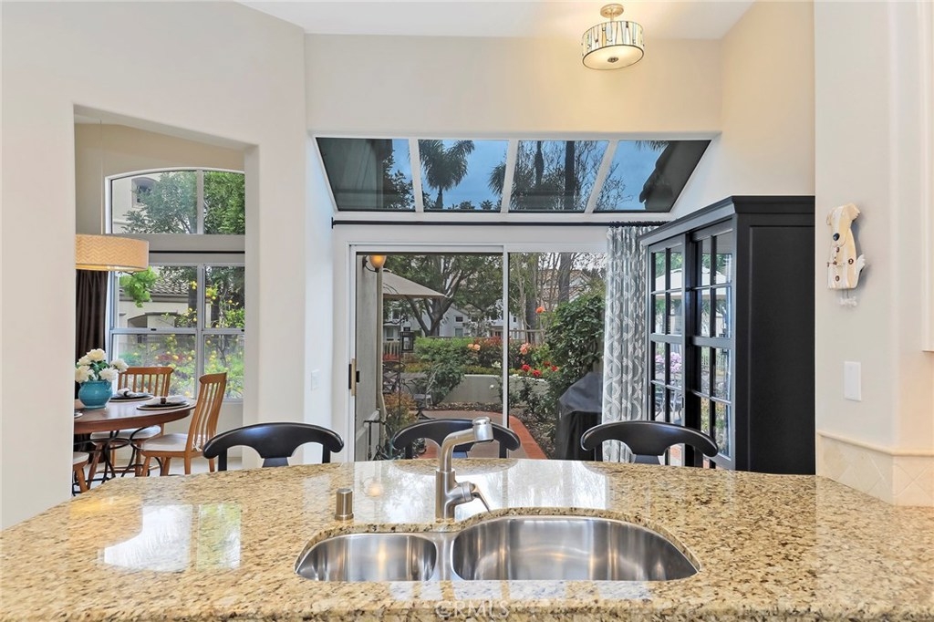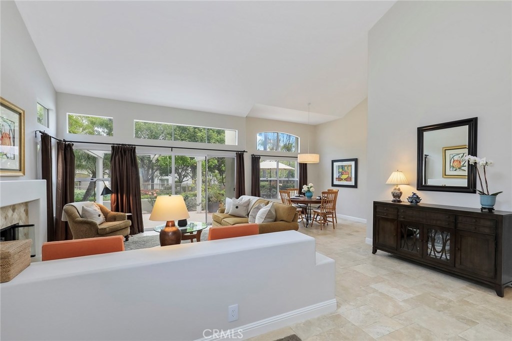 SINGLE STORY HOME built by JM Peters with 2 BEDROOMS + an OFFICE! RESORT STYLE LIVING IN ALICANTE, a Tijeras Creek Golf Course Neighborhood! Features custom paint, tumbled travertine floors, large baseboards, ceiling fans, recessed lighting, vaulted ceilings, living room with a travertine fireplace and a formal dining room. Remodeled kitchen with granite counters, stainless steel appliances, stunning white cabinets, beautiful backsplash, solarium windows and a breakfast nook that opens onto the patio. The master bedroom has vaulted ceilings, walk-in closet with built-ins, private patio and a master bath with a stall shower, tub, vaulted ceilings and skylight. Relax in the private back patio area with an overhang, landscaping and view of the greenbelt. There is a two car attached garage, concrete driveway and the home has been repiped with Pex Piping. Enjoy Alicante's association pool and spa! Also the Rancho Santa Margarita City Association amenities like the Lake, Lagoon, Pools, Parks, Tennis Courts and More!