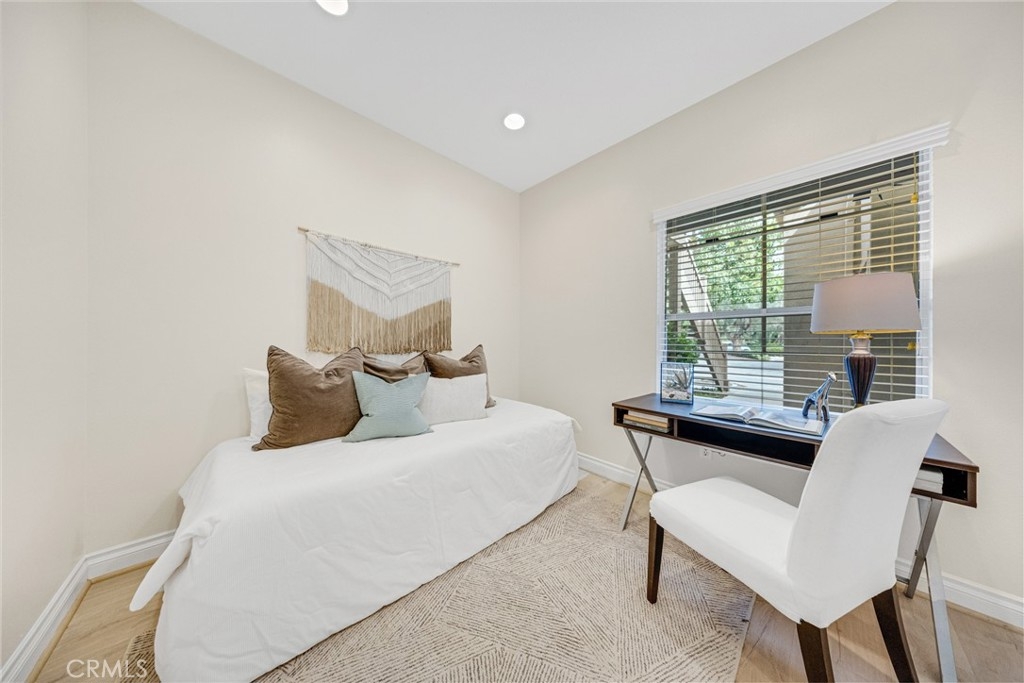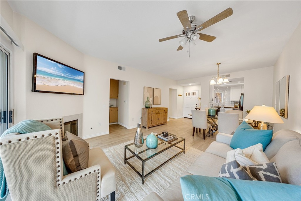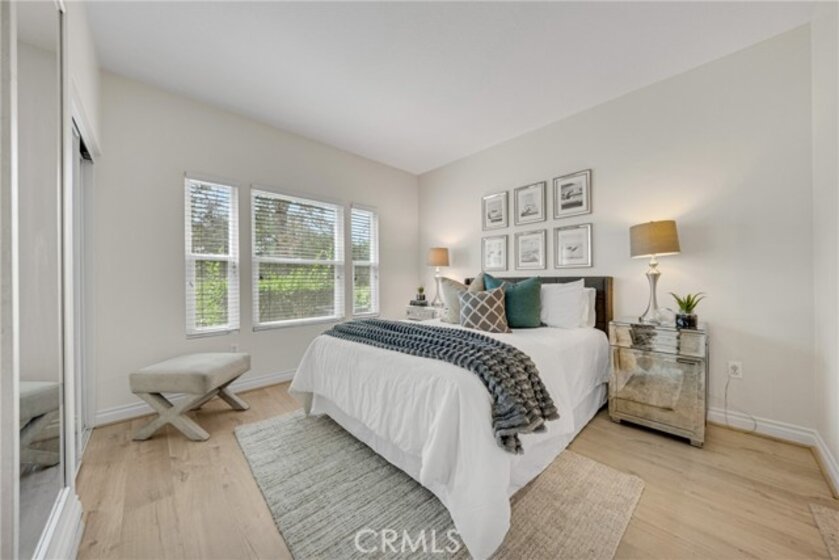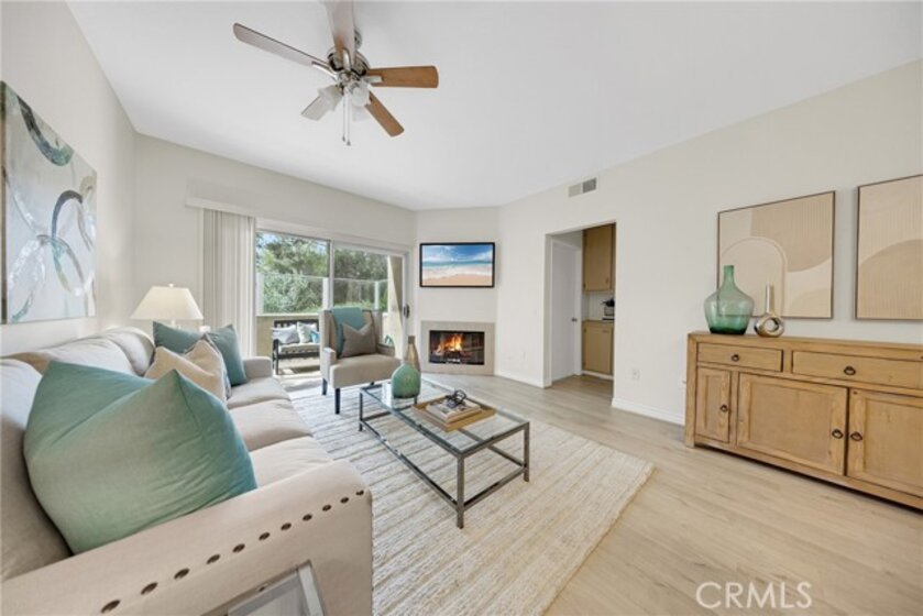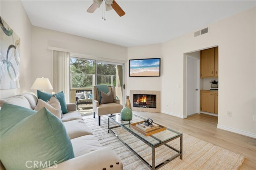 Welcome to Los Portillos! Upgraded ground-floor unit in a private view location featuring 2 bedrooms, 2 bathrooms, a detached 1-car garage, and assigned carport (#148). Enjoy a private patio backing to the Cleveland National Forest with beautiful sunset views. The remodeled kitchen offers granite countertops, a light neutral ceramic tile backsplash, and updated cabinetry. Interior highlights include new vinyl flooring, custom paint, a cozy fireplace, upgraded lighting throughout, and recessed lighting in the guest bedroom, along with mirrored wardrobe doors. The garage features built-in cabinets and overhead storage racks. Community amenities include a pool and spa. Conveniently located within walking distance to shops, restaurants, and more. One of the best-priced 2-bedroom condos in Rancho Santa Margarita with both a garage and a carport. Don’t miss this opportunity!