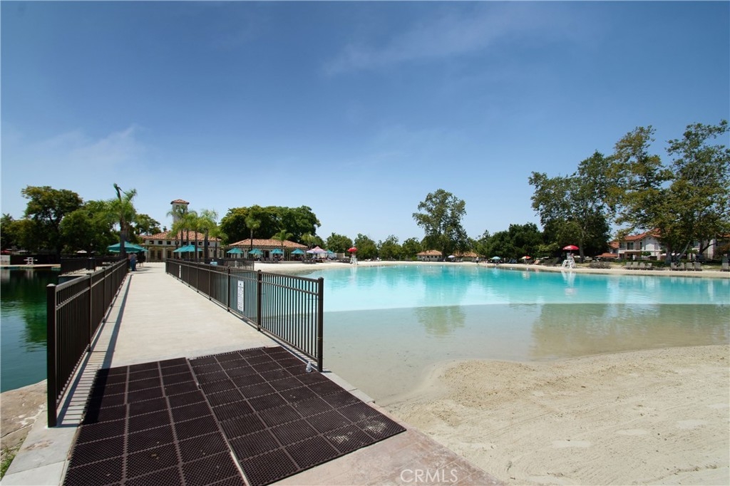 Just steps from the tranquility of Rancho Santa Margarita Lake, this beautiful residence could be yours in the coveted lakefront community of Brisa Del Lago I. The spacious single-level home, with no interior or entry steps, welcomes you with luxury vinyl plank flooring, and lots of natural light. The living room is equipped with a stylish stone-surround fireplace, perfect for cozy evenings, while sliding doors open to a large, private, west-facing patio framed by graceful palm trees, a serene space for watching the sunset. The kitchen has been tastefully remodeled with brand-new quartz countertops, a deep stainless steel sink, breakfast bar seating, and gas range. The generous primary suite offers doors to the patio, while the large secondary bedroom provides flexibility for guests, work, or relaxation. Hallway closet is large enough to be used as desk space. Additional highlights include in-unit full-size stackable laundry, new HVAC system, plantation shutters throughout, and two garage spaces: one attached with direct access and another detached for added convenience or storage. Indulge in resort-style amenities including a community pool and spa with panoramic views of the Lake. Ideally located just 1 block from the highly rated Trabuco Mesa Elementary School and Trabuco Mesa Park’s playground & tennis court. Named the safest city in Ca, Rancho Santa Margarita is also one of the most amenity-rich cities in Orange County. Residents enjoy access to the Beach Club, a splash pad, four Olympic-sized pools, fishing, 13 parks, picnic areas, sports courts, soccer fields, baseball diamonds, tennis courts, multiple playgrounds, and a vast urban trail system. The community hosts various events throughout the year, including spectacular 4th of July fireworks over the lake. With its rare combination of single-level ease, thoughtful upgrades, and resort-style surroundings, this is where every day feels like a getaway.