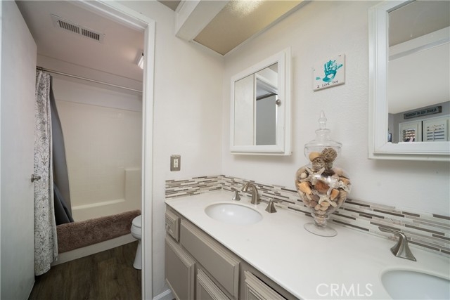 Just steps from the tranquility of Rancho Santa Margarita Lake, this beautiful residence could be yours in the coveted lakefront community of Brisa Del Lago I. The spacious single-level home, with no interior or entry steps, welcomes you with luxury vinyl plank flooring, and lots of natural light. The living room is equipped with a stylish stone-surround fireplace, perfect for cozy evenings, while sliding doors open to a large, private, west-facing patio framed by graceful palm trees, a serene space for watching the sunset. The kitchen has been tastefully remodeled with brand-new quartz countertops, a deep stainless steel sink, breakfast bar seating, and gas range. The generous primary suite offers doors to the patio, while the large secondary bedroom provides flexibility for guests, work, or relaxation. Hallway closet is large enough to be used as desk space. Additional highlights include in-unit full-size stackable laundry, plantation shutters throughout, and two garage spaces: one attached with direct access and another detached for added convenience or storage.Indulge in resort-style amenities including a community pool and spa with panoramic views of the Lake. Ideally located just 1 block from the highly rated Trabuco Mesa Elementary School and Trabuco Mesa Park’s playground & tennis court. Named the safest city in Ca, Rancho Santa Margarita is also one of the most amenity-rich cities in Orange County. Residents enjoy access to the Beach Club, a splash pad, four Olympic-sized pools, fishing, 13 parks, picnic areas, sports courts, soccer fields, baseball diamonds, tennis courts, multiple playgrounds, and a vast urban trail system. The community hosts various events throughout the year, including spectacular 4th of July fireworks over the lake. With its rare combination of single-level ease, thoughtful upgrades, and resort-style surroundings, this is where every day feels like a getaway.