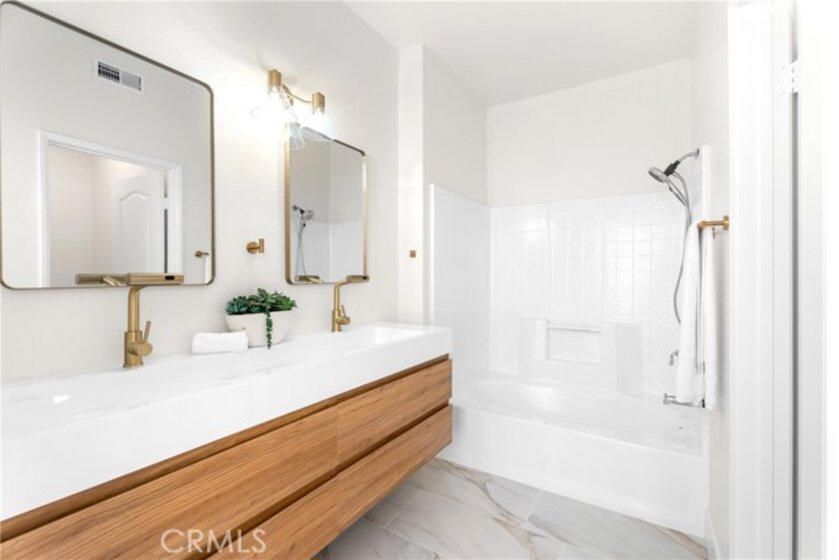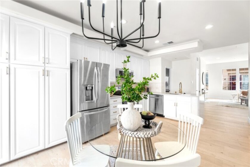 Gorgeous lakefront community with **2 Primary suites** Step inside to discover a seamless fusion of contemporary design and functionality, featuring an open floor plan that maximizes space and natural light throughout. Living room and dining room connects to each other giving that seamless open flow. The heart of this home is a chef's delight! Beautiful kitchen with white crisp cabinets, New quartz counters, New tile backsplash, New stainless steel appliances, New range, New hood, New sinks, & New fixtures. New waterproof laminate floors, New recessed lighting, New outlets, New baseboards, New paint inside. Scraped ceilings. Double pane windows. Large primary bedroom. Primary bath has custom tile floors, New vanity, & New mirrors. New mirrored closet doors. Nestled in a quiet, well-maintained neighborhood with lush trees and green spaces, boasting a bright and airy floorplan. The generous living room, bathed in natural light, flows seamlessly into the dining area and kitchen, which features ample cabinetry and counter space that everyone desires.. The community provides access to a resort-style pool. This townhome also includes a 2-car garage and a private courtyard, offering additional outdoor space for relaxation or gatherings. Ideally located near a wide array of shopping, dining, and recreational options. The well-cared-for community grounds and amenities, including multiple swimming pools, the Rancho Santa Margarita Beach Club, tennis courts, parks, hiking trails and top-rated schools.