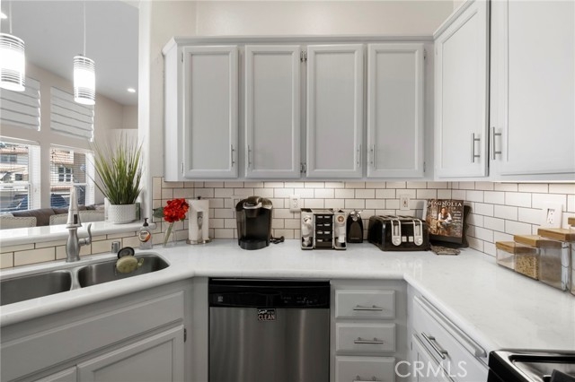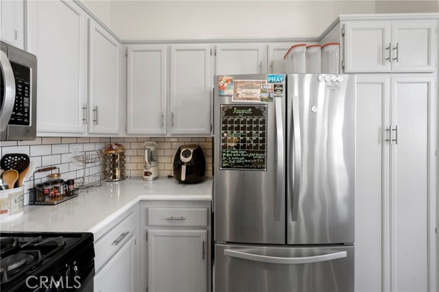 Beautifully upgraded 2-bedroom end unit in the desirable Cabo Vista Community in the Melinda Heights area. Entry on first floor has stairs leading to the main living area which showcases the family room, kitchen, and dining space. The kitchen features contemporary gray cabinets and pantry with plenty of storage space, quartz countertops, and subway tile backsplash. Appliances include a gas stove, dishwasher, and microwave hood vent. Bar-top seating offers a great space for a breakfast nook, while the dining area offers a beautiful wine & coffee bar with a wine fridge and beverage cooler. Large balcony outside the living room provides wonderful views of the mountains. Both bedrooms are spacious and the master bedroom features a large walk-in closet and private bathroom. Inside laundry conveniently located in the hallway fits a full-sized washer & dryer. Direct 1-car garage access by front door with plenty of open parking spaces for additional parking. HOA amenities include pool & spa.