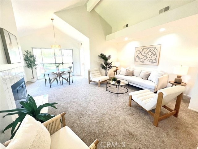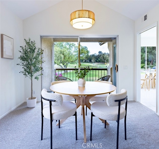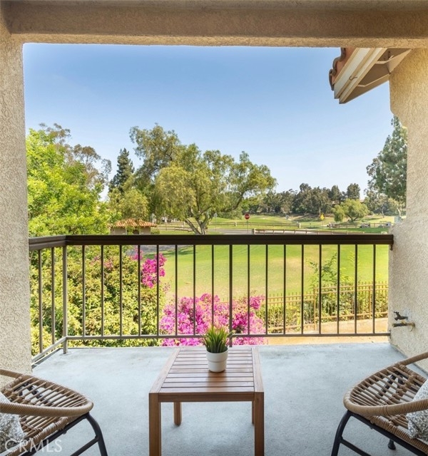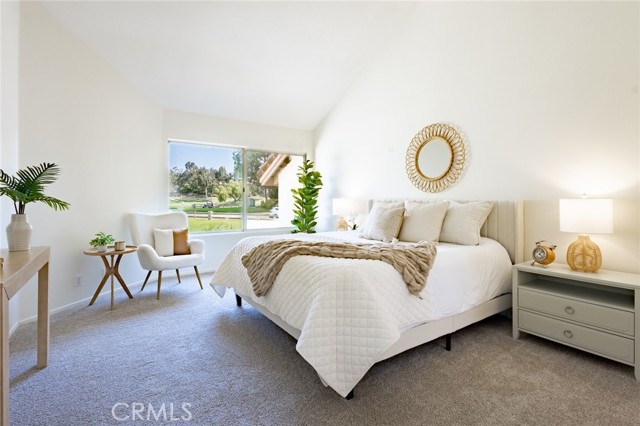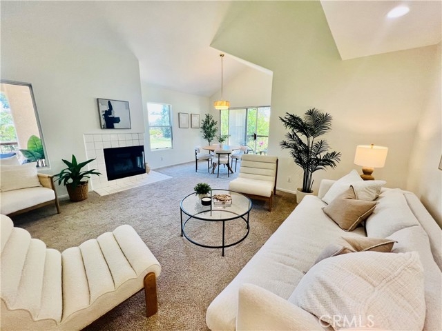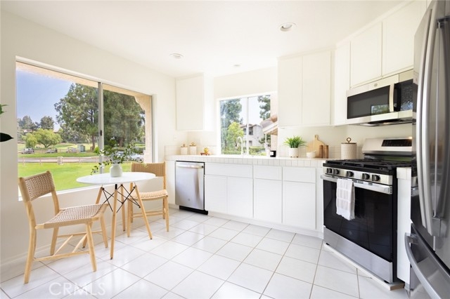Experience breathtaking Tijeras Creek Golf Course views from this inviting 2-bedroom, 2-bath condo. The living space is bright and airy, featuring high ceilings, abundant natural light, and a cozy fireplace. Sliding doors open to a private patio where you can relax and enjoy the quiet, serene surroundings. The spacious kitchen also captures the scenery, with brand-new stainless steel appliances and plenty of room to cook and gather. Fresh paint and plush new carpet add to the home’s move-in ready appeal. Views of nature can be enjoyed from nearly every room, including the tranquil primary bedroom. This retreat features vaulted ceilings, generous closet space, and a large ensuite bathroom. A second bedroom and full bath offer flexibility for guests or a home office. Practical features include an attached garage with direct access, a second detached garage for storage or an additional vehicle, and a dedicated laundry room with a full-size washer and dryer. The community offers resort-style amenities such as a sparkling pool, spa, and beautifully landscaped grounds. Nearby Rancho Santa Margarita Lake provides lakeside paths, parks, tennis, pickleball, and miles of hiking and biking trails. This home combines natural beauty, modern comfort, and a peaceful setting in a highly desirable community.
