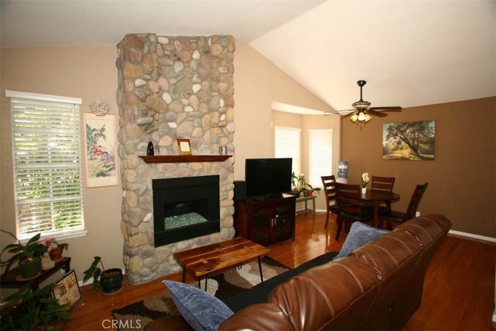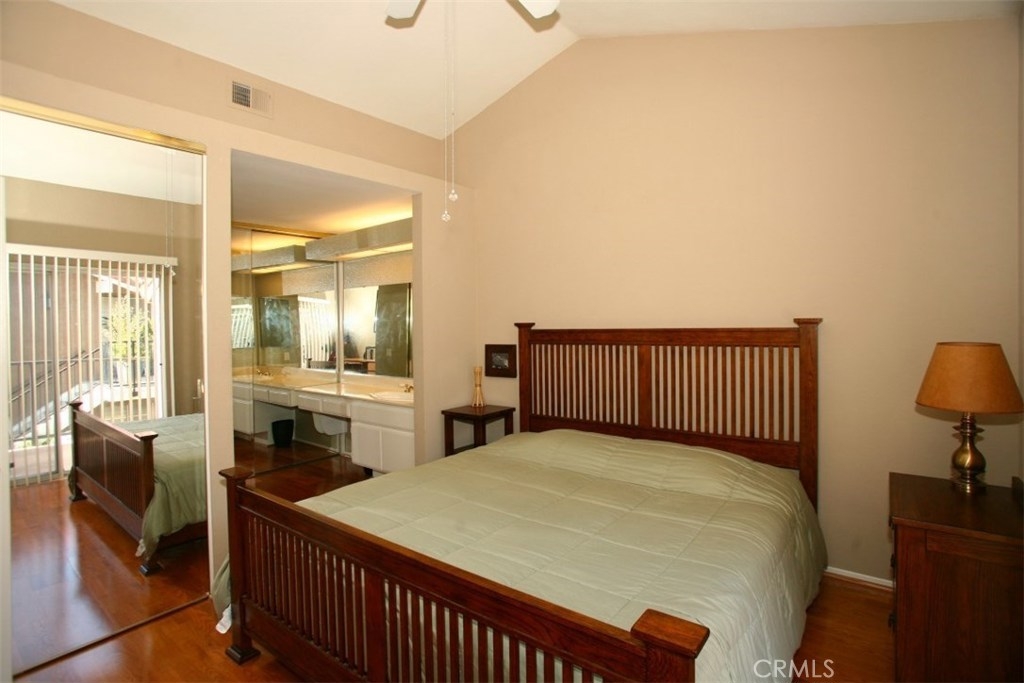 Great first home or investment! Turnkey Rancho Santa Margarita Condominium Community featuring popular "Carriage Unit" (no one above or below). End unit. High Vaulted Ceilings in the Master bedroom, living room and dining area. Cozy stone fireplace in the living room, fireplace is decorative only. Updated wood floors. Smooth ceilings. All appliances stay including new washing/dryer machine. One car garage. 2 comfortable patios (one from the entrance and the other of the master bedroom. Close to schools, restaurants, shopping, Rancho Santa Margarita Lake and Beach Club and community pool and spa.