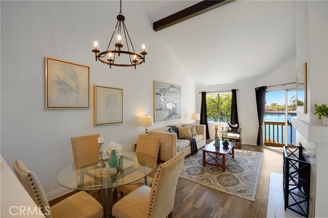 Beautiful lakefront condo offering the best location and views in all of Brisa del Lago! This light-filled and spacious two-bedroom home is move-in ready, featuring soaring ceilings and stunning new laminate wood flooring throughout. The inviting living room showcases a newly tiled fireplace and modern chandelier, while the remodeled kitchen boasts sleek quartz countertops with new backsplash, newer cabinetry, and new LG stainless steel appliances, including a new refrigerator. The open layout flows seamlessly into the dining and living areas, making it ideal for entertaining.Enjoy panoramic lake views and front-row seats to the RSM fireworks from the private balcony. The spacious primary suite offers direct balcony access, dual wardrobe closets, new LED lighting, and a luxurious remodeled en-suite bathroom with new dual sinks, new quartz counters, custom cabinetry, and a new walk-in shower with frameless glass doors and designer tile. The upstairs bedroom is bright and versatile with its own balcony, perfect as a guest room or home office. Additional upgrades include a newer A/C and furnace, newer water heater, newer garage door and opener, interior doors, baseboards, blinds, new switches. Convenient in-unit laundry with washer and dryer included. Parking is easy with a detached one-car garage plus a covered carport just steps from your door. As a resident of Rancho Santa Margarita, you’ll enjoy access to the Lago RSM Beach Club, scenic trails, parks, tennis and pickleball courts, multiple pools, and a variety of dining and shopping options—all within minutes of top-rated schools and the 241 Toll Road. This is truly a rare opportunity—don’t miss it!